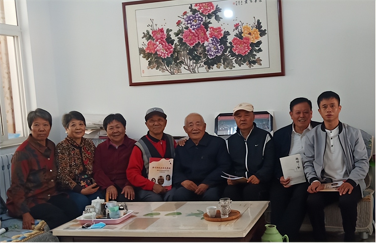 为孔庆珍向卢传河(左二)孙其昌(左三)王庆吉(左四)史瑞泉(左五)
