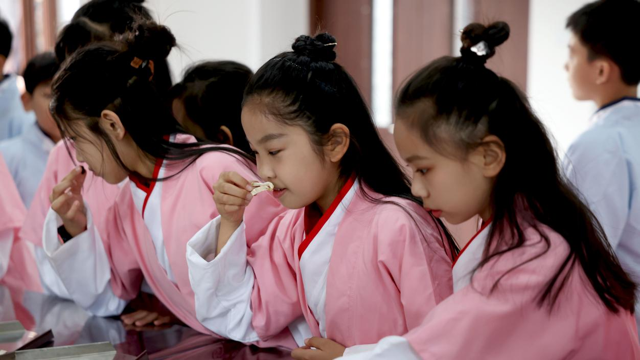 近日,在河北省沧州市大运河畔的中医文化馆里,沧州市实验小学的学生身穿汉服,开启了一场中医研学之旅。
