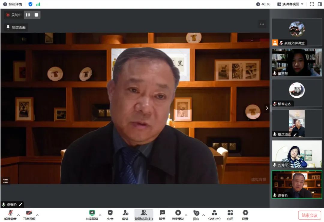 编者按:2023年11月8日晚7:30-9:20,济南市作协通过“腾讯会议”客户端举办线上“泉城文学讲堂”第22讲,邀请作家逄春阶共享“说说《芝镇说》”,同时特邀《芝镇说》责任编辑——高级编辑、农村大众纸媒中心常务副主任刘秀平(报纸连载责编)、济南出版社编辑部主任董慧慧(出版责任编辑)出席,谈了编辑《芝镇说》的感受和体会。包括济南市作协主席团成员在内共50余人参加线上活动。现将逄春阶的主讲提纲发布。