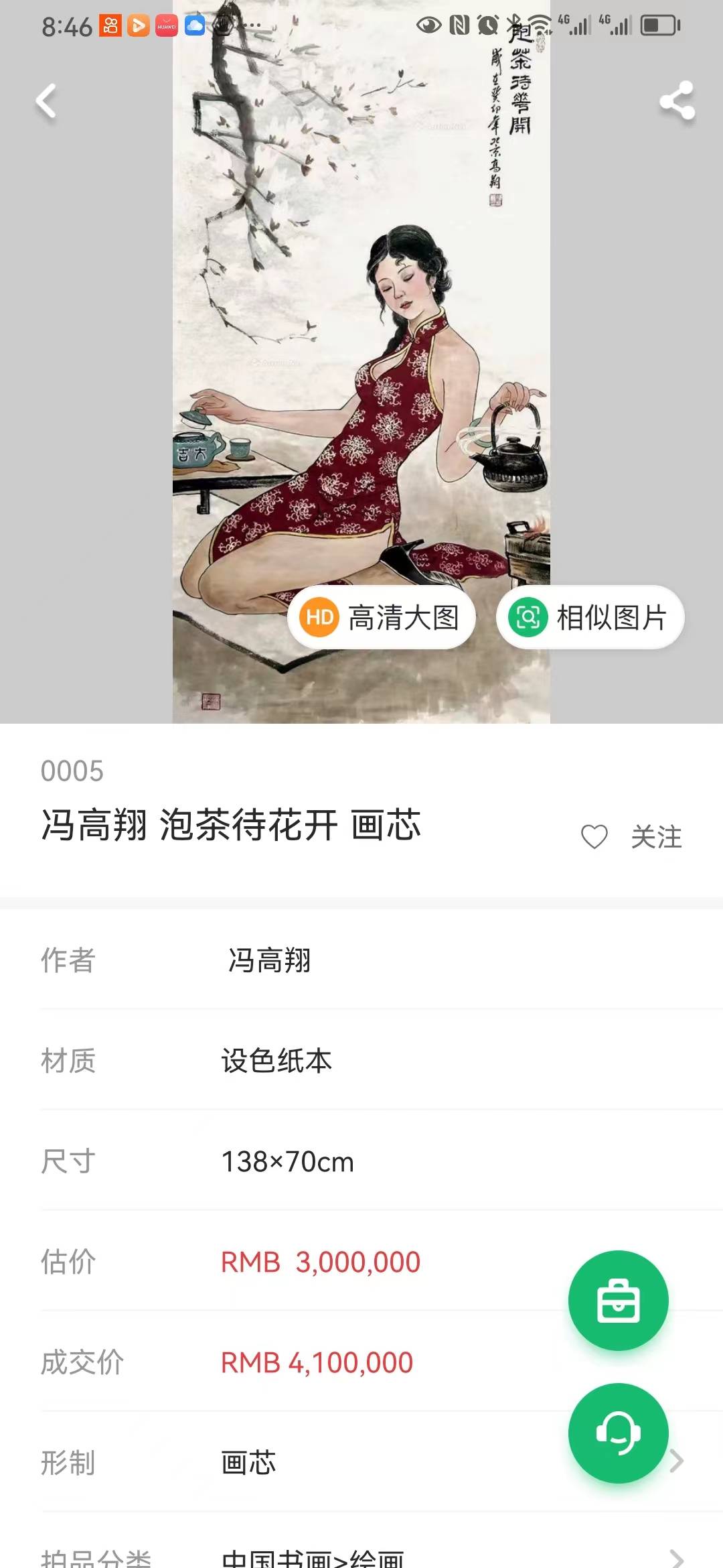2023年11月11日大红袍艺术家冯高翔作品《泡茶待花开》尺寸138x70cm,由北京传世水墨拍卖有限公司在金秋盛世专场拍卖会拍卖,以肆佰壹拾万元(4100000元)落槌成交!