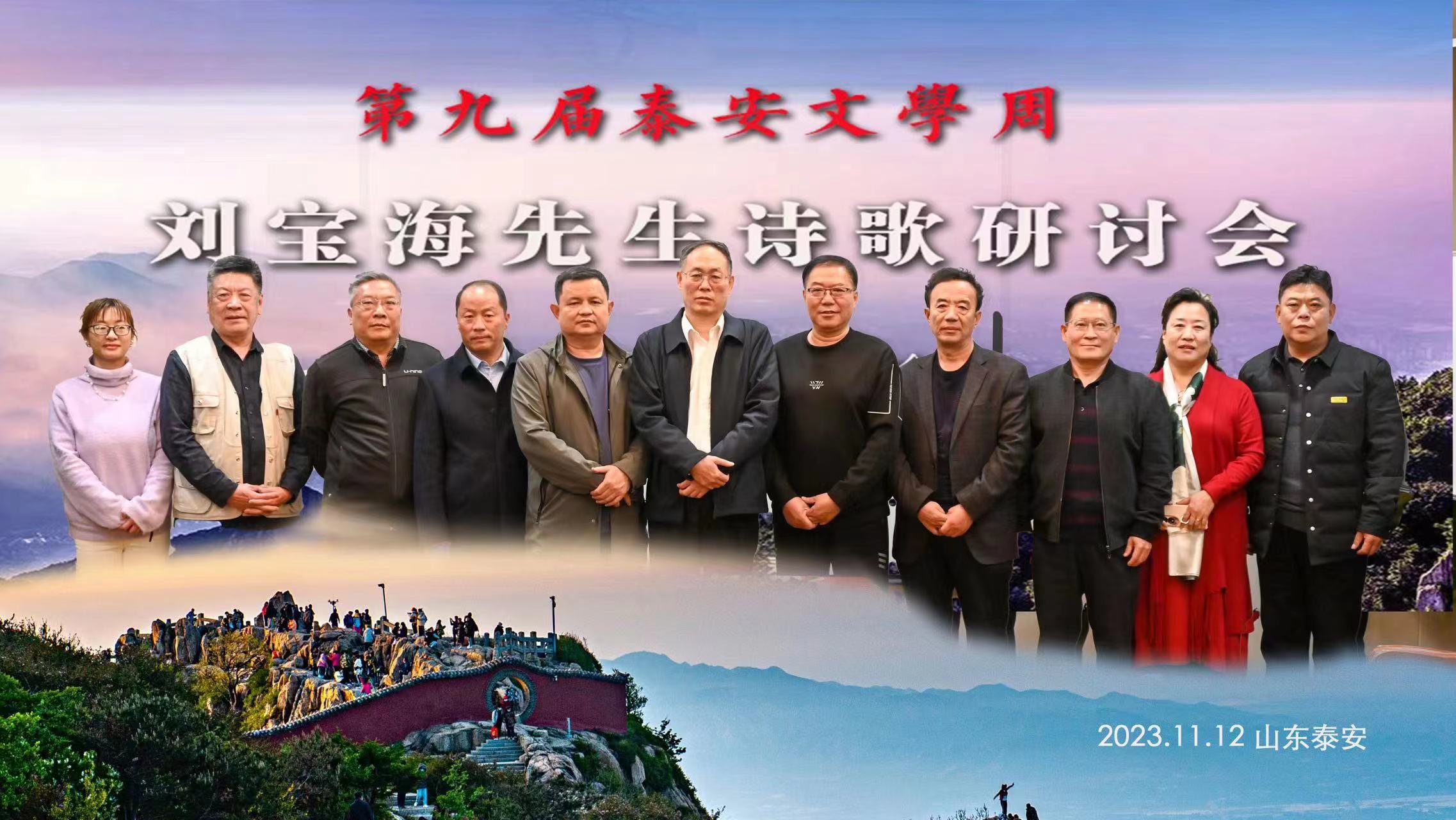11月12日下午,初冬的泰城气温骤降,泮河畔的泰安中达御景精品酒店的7层会议室里却气氛热烈。作为泰安第九届文学周重要活动之一的“刘宝海的诗歌研讨会”正在这里举行。会议由泰安市文联主办,泰安市作家协会、泰山文学院承办,北京长河文丛编委会、中诗在线山东频道、泰安市萧家酒坊酒业有限公司协办,来自济南和泰安市区的长河文丛总编辑、著名诗人、诗评家马启代,中诗在线山东频道站长、书法家、诗人周永,泰安市文联党组成员、副主席孙启虓,泰安市文联创作室主任、市作协主席谭践,泰安市作协常务副主席、泰山文学院院长齐欣,泰安市作协主席团委员、创联部主任贾福英,泰安市作协副秘书长、诗人刘宗刚,泰山学院学报编辑、诗人李慧女士,岱岳区委宣传部常务副部长、区文联主席尚清峰,岱岳区融媒体中心主任、党委书记李清国,岱岳区原文旅局局长、区政协学习委主任冯力,泰安市萧家酒坊酒业有限公司、国家一级酿酒师、国家一级品酒师萧立起,摄影师邢永来,诗人刘宝海以及《泰安日报》和岱岳区电视台的记者一起参加了研讨,马启代主持了会议。