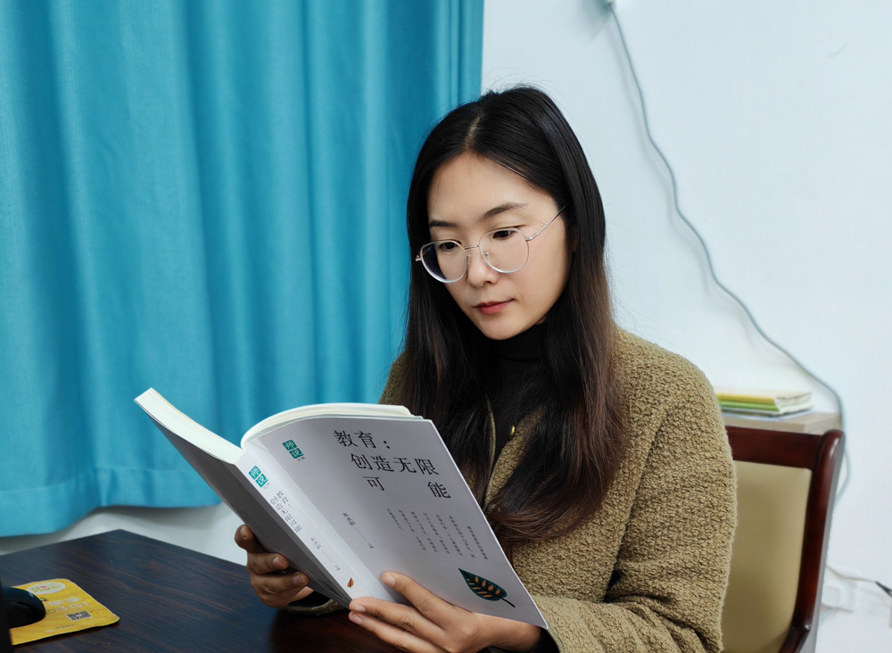 刘冬梅正在认真阅读《教育:创造无限可能》。作者本人提供