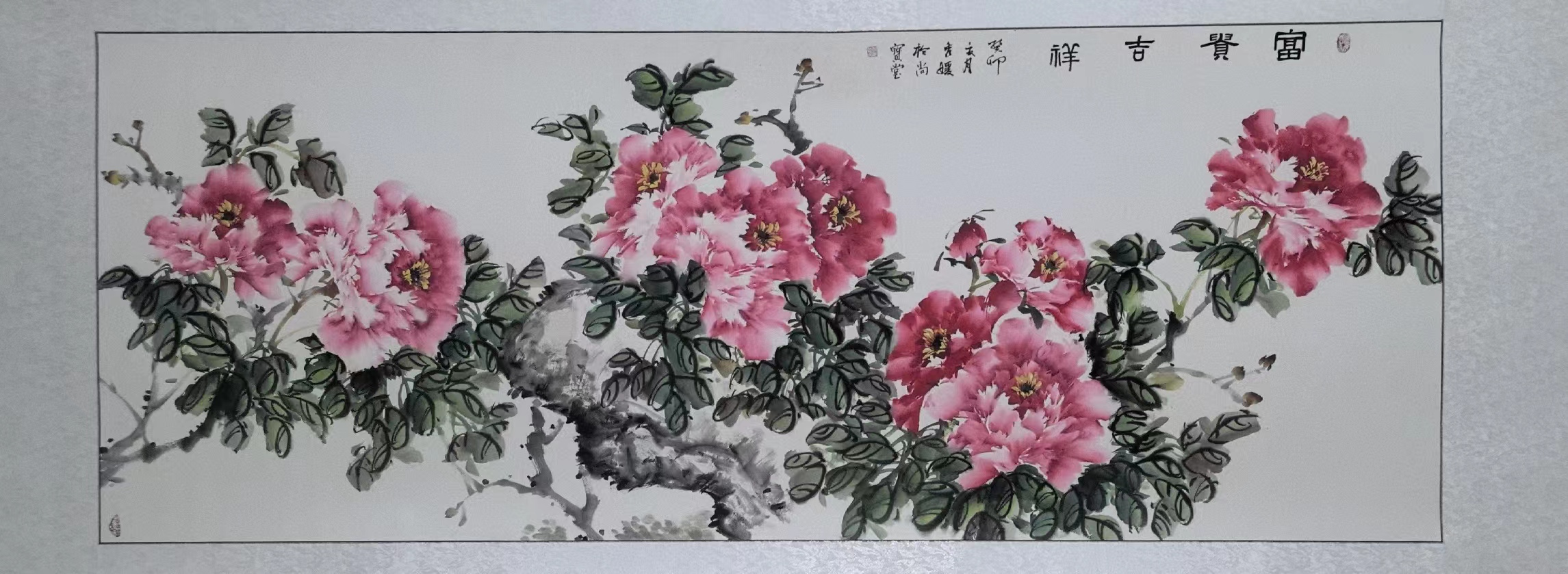 闫秀媛会长还向参加有关活动的各位领导、嘉宾赠送了泰山诗书画作品,受到高度评价,称“魅力十足,神采奕奕”,“唯有牡丹真国色,花开时节动京城。愿你事业芝麻开花节节高,前途无量再攀高峰。”