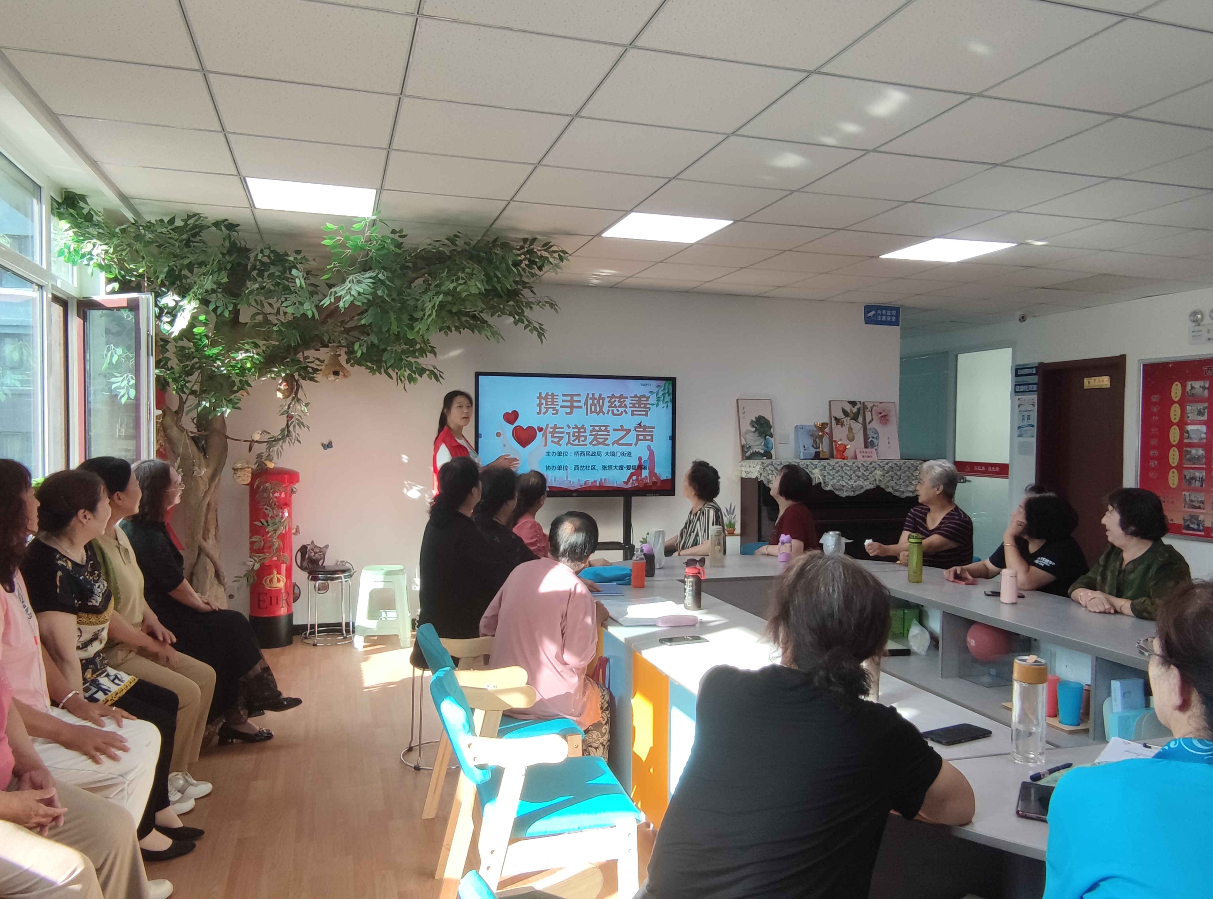 李明秀在桥西区西岔社区日间照料服务中心为老人们讲解保健知识。