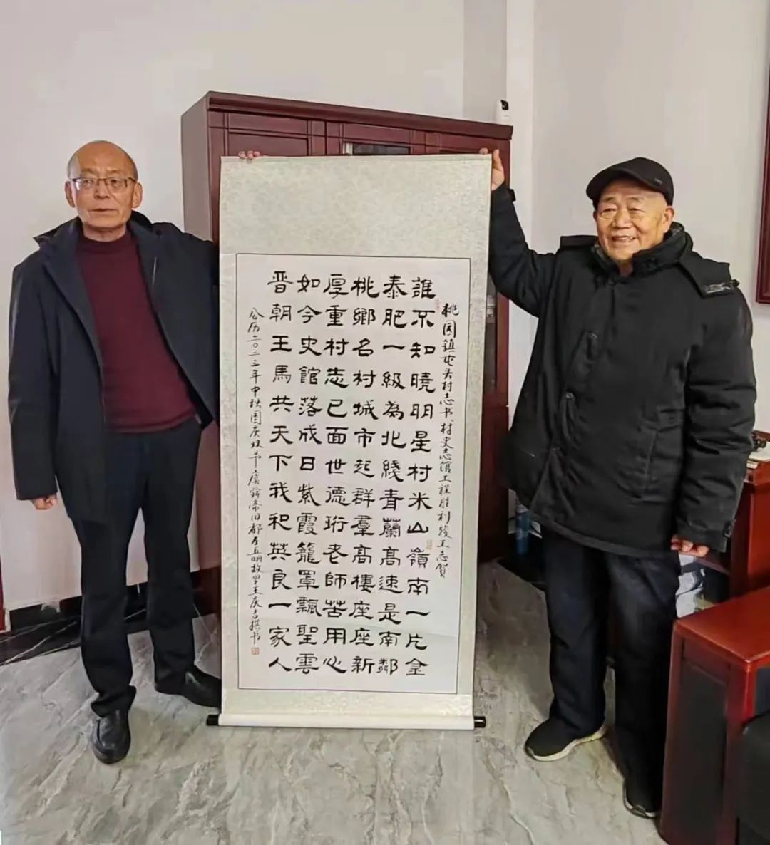 我和妻子要和王书记辞行回肥。王书记、德珩老师说,哪里行呢,您用这么多心,费力创作书写,又亲自前来赠送,热情大矣!俺请都请不来,快晌午了,不能走。德珩老师说,有准备,不能饿着肚子走。