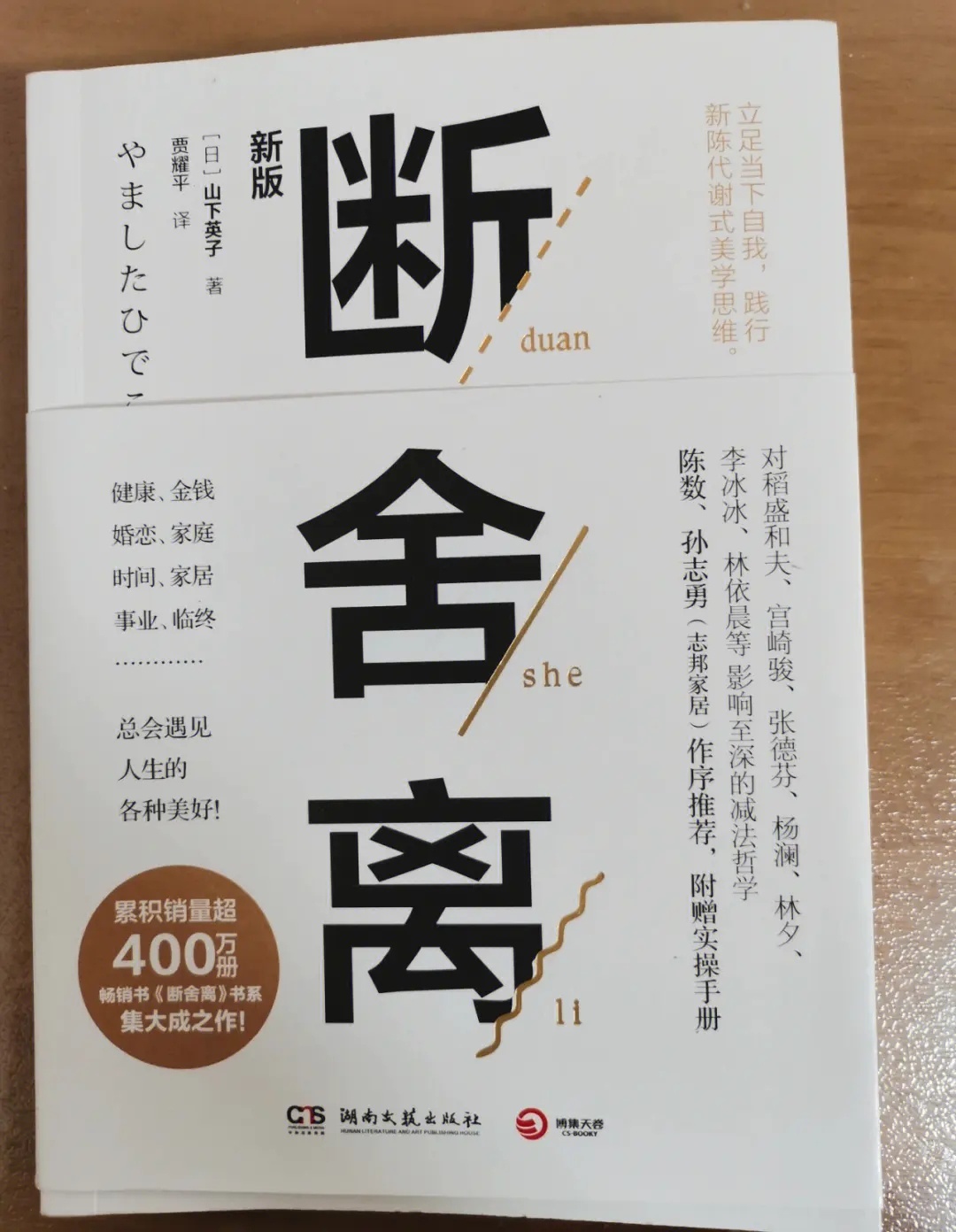 《断舍离》是一本值得阅读的书籍,断,断绝不需要的东西;舍,舍去多余的废物;离,脱离对物品的执念。