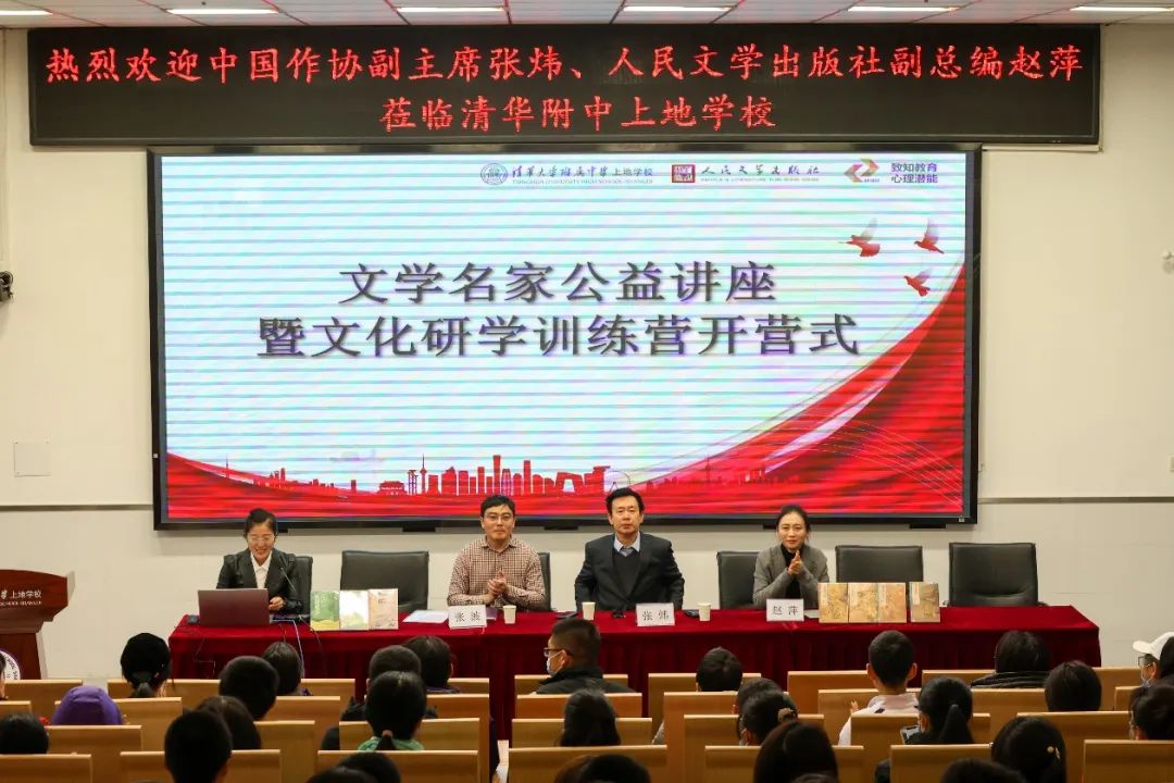 2023年11月25日,人民文学出版社邀请中国作家协会副主席、茅盾文学奖得主张炜老师到清华大学附属中学上地学校,为学校师生及家长带来主题为“少年的阅读与写作”文学名家公益讲座,为文化研学训练营拉开序幕。学校副校长张波、人文社副总编辑赵萍出席,学校德育处副主任张春梅主持此次活动。