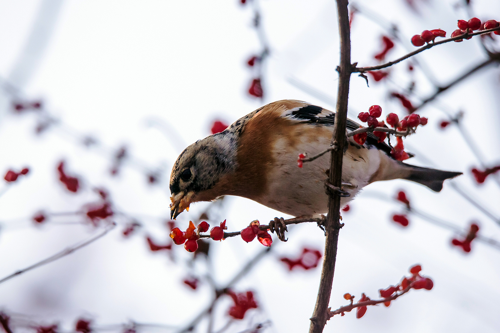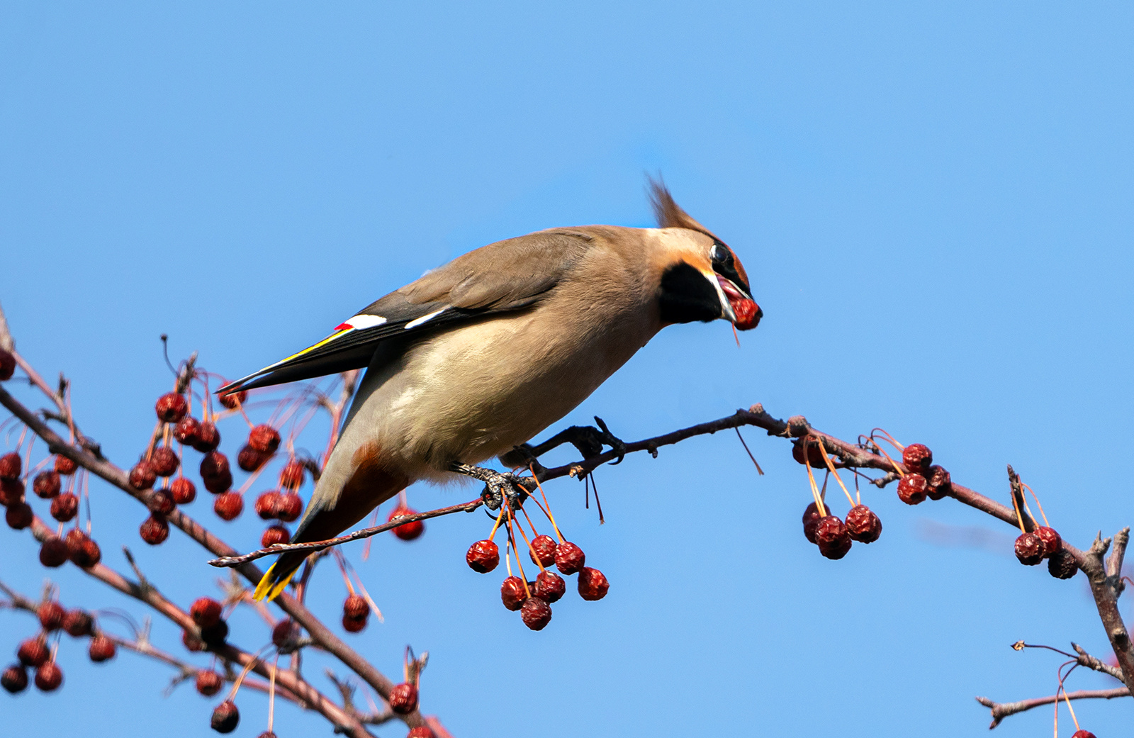 枝头进食的太平鸟。陈晓东 摄
