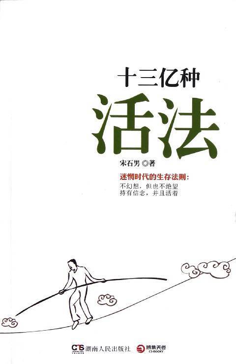 《十三亿种活法》并不是一本介绍不同身份人的不同生活的书,它分为四辑共51篇文章,涵括了作者宋石男近十年来最优秀的历史评论、时事观点、叙事散文、生活随笔等。他的文字犀利起来能直刺体制的心脏,温情起来又闪烁着普通人的泪光。而最让我欣赏的是,无论他刻画出多么令人唏嘘的历史、残酷的现实、人性的冷漠、喧嚣的孤独,他依然对这个世界满怀希望,依然内心充满隐逸的力量,依然追求诗意的生活,依然选择为爱付出,为梦想前行!
