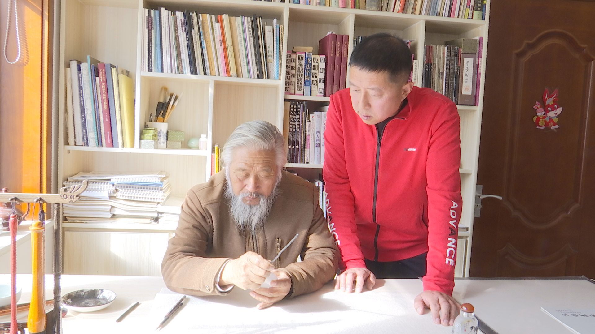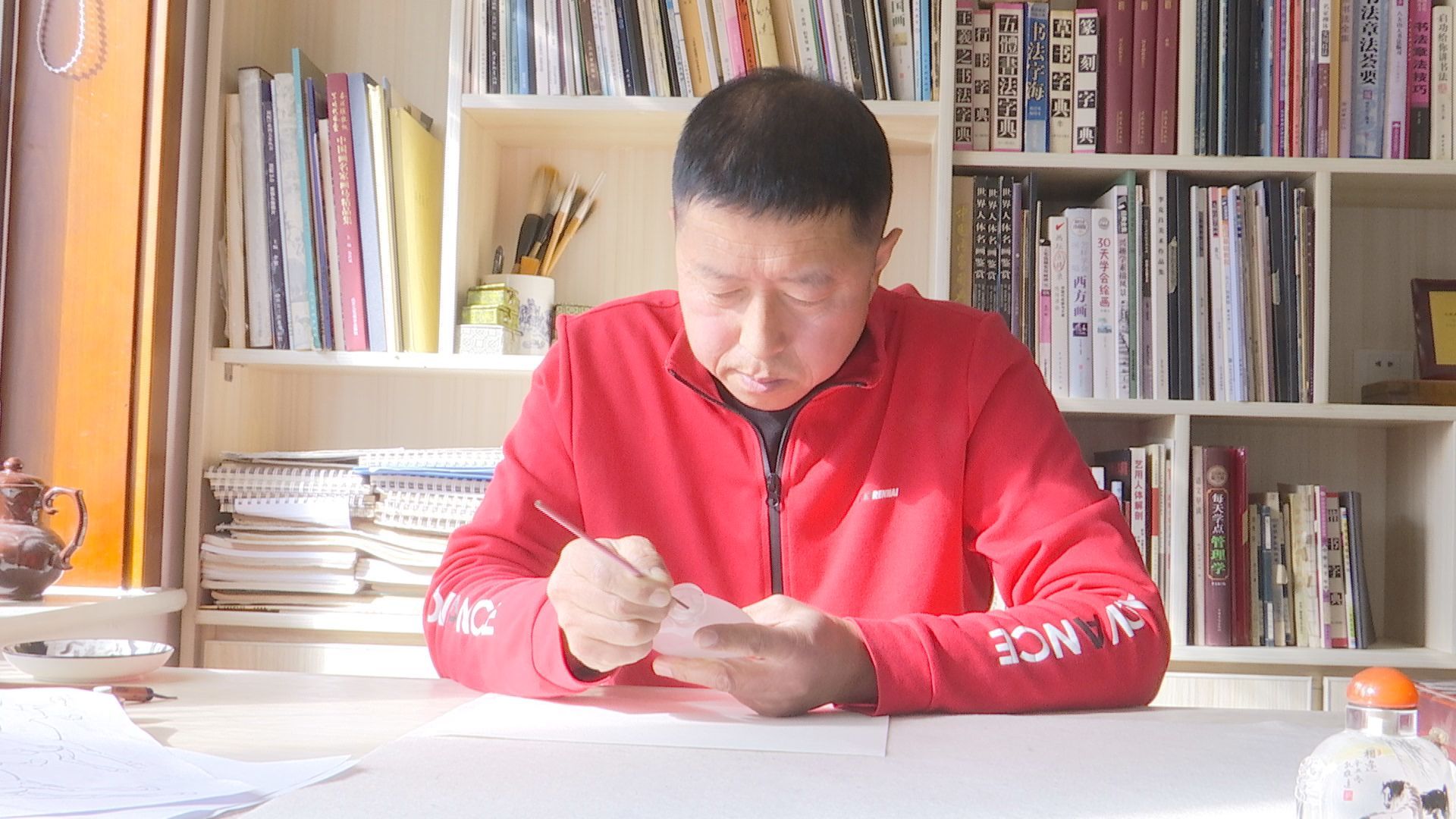 孔维建学习鼻烟壶内画技法。李媛丽 供图