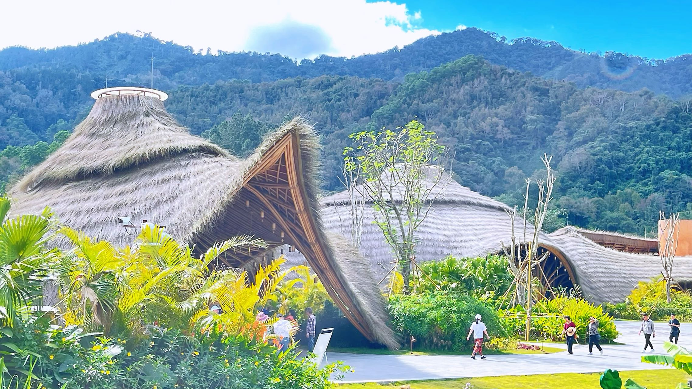 在炜安排的一农家特色餐馆吃过午饭,我们下山途中拐进了网红打卡地,坐落在热带雨林深处,九山半水半分田的海南美丽乡村建设示范单位、著名黎族古村落毛纳村。这里,依山傍水,满眼碧绿,有数不尽的巨叶植物,听不尽的虫鸣鸟叫,吸不尽的负氧离子清新空气;有黎族同胞种植生产,极富当地特色的山茶叶、土蜂蜜、山栏米酒;有党和国家最高领导人驻足的共同广场、与老百姓亲切交谈坐过的硕果亭,还有“
