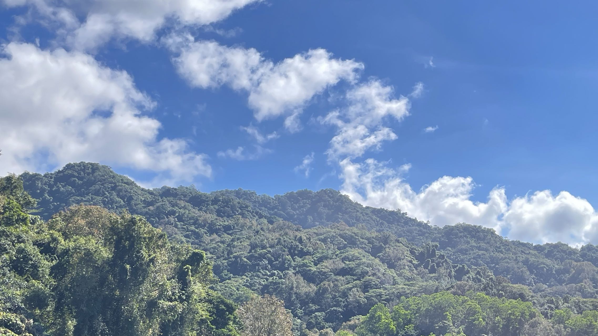 穿过市区几条主要街道,我们来到三月三大道一侧的一处公园。这里是以山体、峡谷、溪流形成的城市休闲场所,颇具特色的是右岸的健身步道。沿1200米长的步道缓缓而上,自觉不自觉地会被这里的负氧离子灌醉。植被茂密,溪流潺潺,因山势形成的大小瀑布哗哗作响。翠竹,气榕,斜叶榕,爪哇木棉,还有一些叫不出名字的乔木灌木,浓叶密枝,高大参天。走在这城市的深处,确有另一种滋味儿。也许是下午的原因,来步道健身的居民不多。倒有两家自带扩音设备自娱自乐的组合,嗨的不亦乐乎。