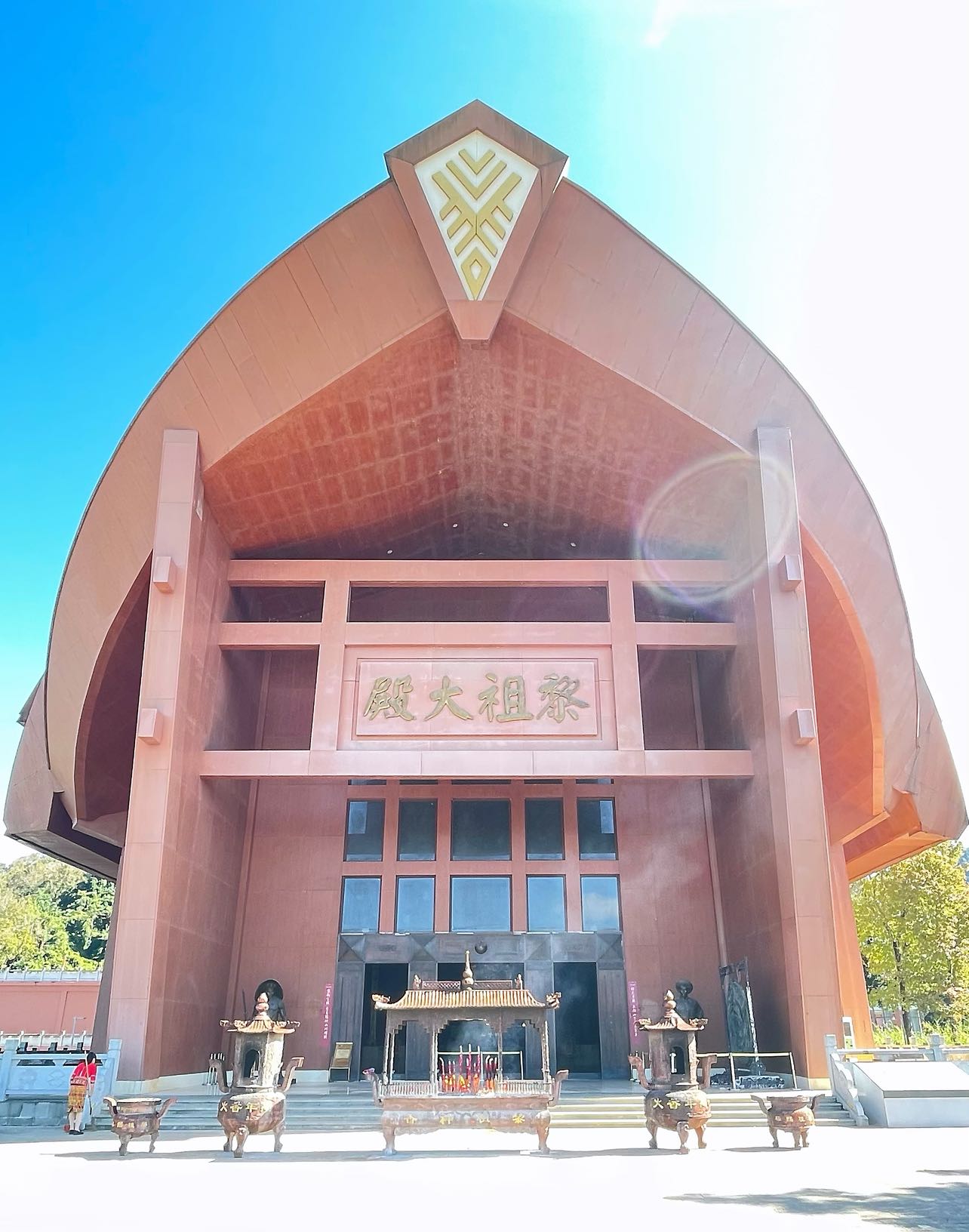 来自河北沧州的有偿讲解员,态度和蔼,工作认真。给我们详细介绍了黎族的历史文化、婚姻民俗、生产生活、黎族人民为海南革命建设事业作出的巨大贡献,黎祖大殿的建设过程、结构造型、室内壁画、供奉神像等内容。特别告诉说,穹顶,无梁,三重檐,覆舟型,高达33.33米的大殿,是全世界独一无二的船形屋;高9.5米,全身镀金,威武端庄,力大无比的袍隆扣神像,是黎族人民智慧和力量的象征,值得崇拜和景仰。