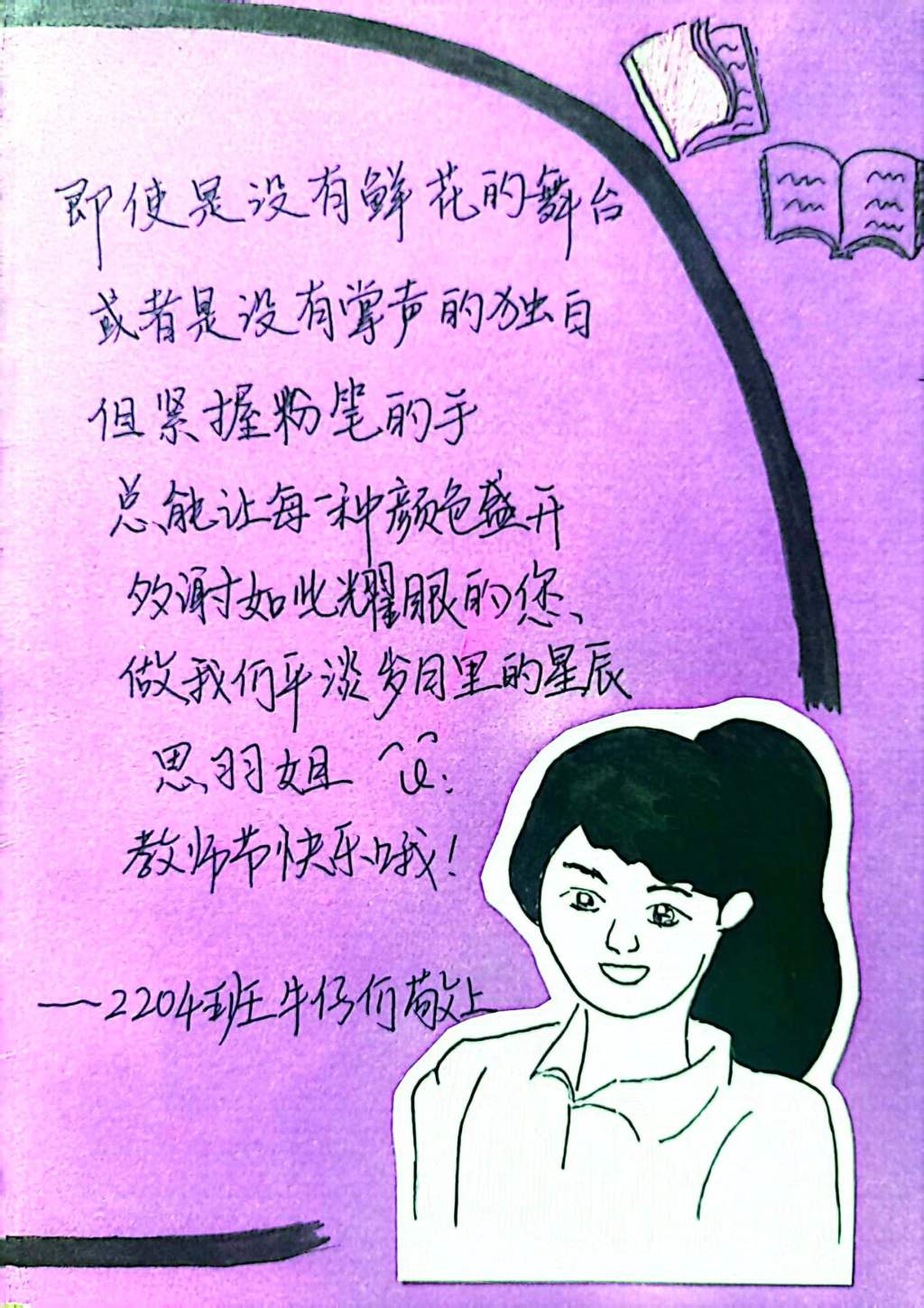 去年的教师节正遇上周末,我有事回了趟家。当我再次回到办公室时,被眼前的一张张贺卡和一束束鲜花感动了。“即使是没有鲜花的舞台,或者是没有掌声的独白,但紧握粉笔的手,总能让每一种颜色盛开。多谢如此耀眼的您,做我们平淡岁月里的星辰。思羽姐,教师节快乐哦!”孩子们的这段话让我破防。我没想到平日里调皮捣蛋的他们,心底里藏着对我最深沉的爱。