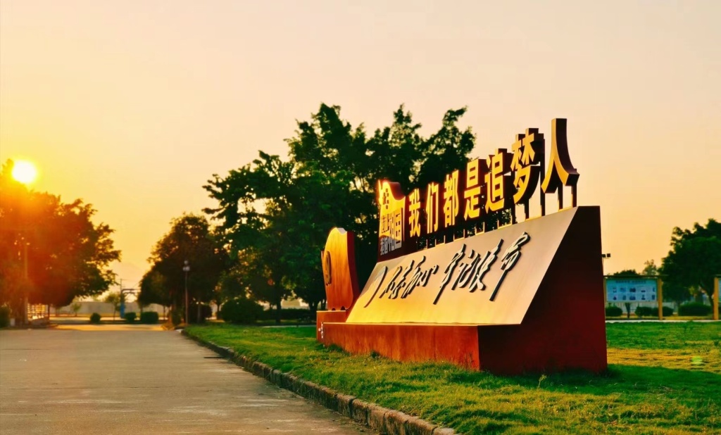 简短的座谈会后,我们一行六人,背起行囊,带上梦想,开始踏上支教的新征程。一路向北,终于赶在太阳落山前到达支教学校:柳城县实验高级中学。我走进校门,看到整个校园映照在夕阳金色的余晖中,漂亮极了。尤其是那一座刻着“我和我的祖国”“我们都是追梦人”“不忘初心、牢记使命”21个大字的底座牌,在夕阳的照耀下,仿佛镀上了一层金,格外耀眼。那一刻,我便暗下决心:我一定会不忘初心,在支教期间坚守岗位,努力发光发热。