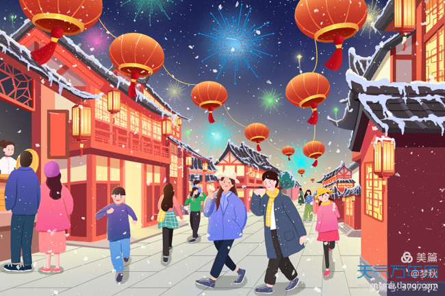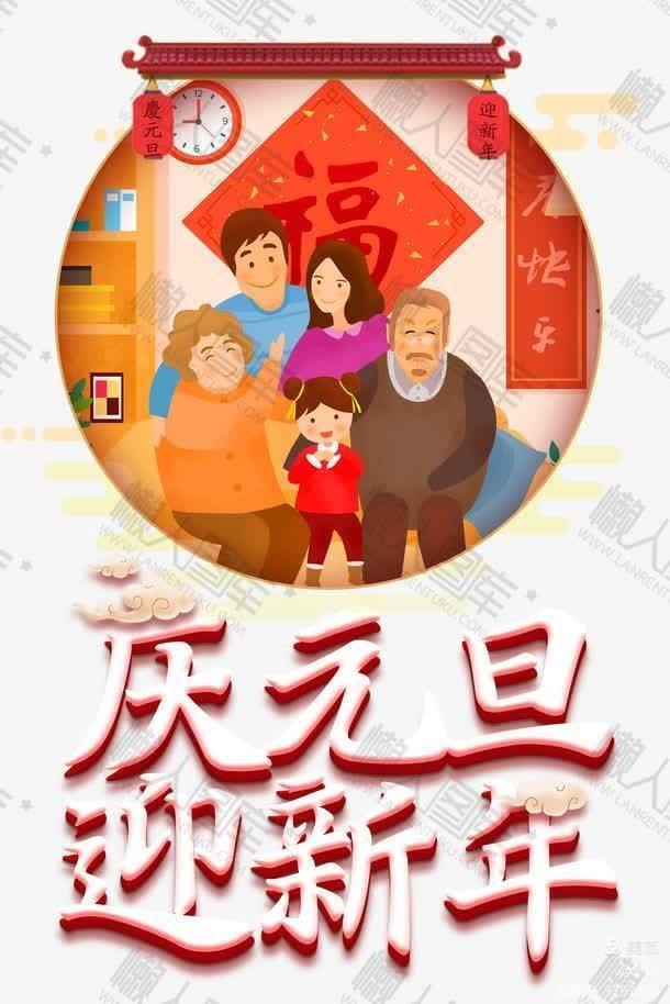 张灯结彩庆元旦,十亿神州展笑颜。