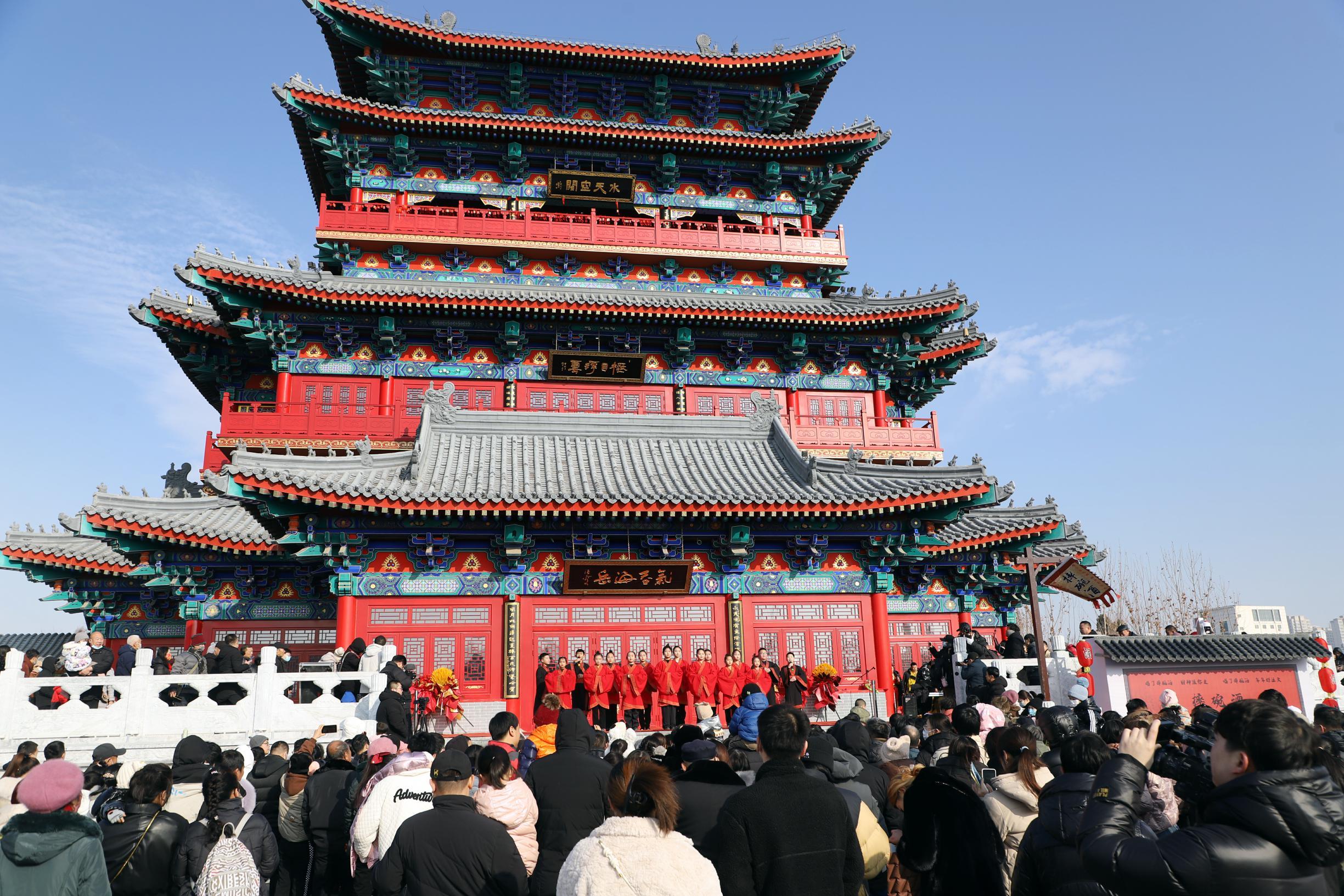 “今天两楼对外开放,可以登高远眺了。”“听说内部陈列了很多和沧州有关的文物,一定要进去一饱眼福。”……寒冷的天气难抵市民的热情,开楼仪式还未开始,南川老街就已聚集了许多慕名而来的游客,共同翘首盼望南川楼、朗吟楼揭开“神秘面纱”。