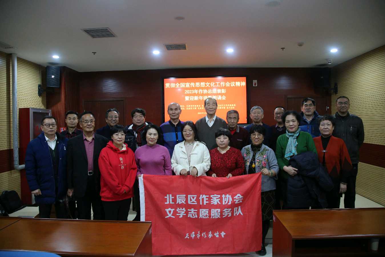 2023年末,2024年新年来临之际,为深入学习习近平文化思想,宣传贯彻全国宣传思想文化工作会议精神,落实天津市“十项行动”、北辰区委“无奋斗不北辰,辰兴十干”的号召,推进“强基工程”—文艺助力基层文明建设活动,丰富基层群众文化生活,推动基层文艺创作和生产、培训基层文艺人才,满足人民日益增长的美好生活需要,由天津市作家协会,北辰区委宣传部、区文旅局主办,北辰区文联、北辰区作协、北辰区图书馆、北斗诗社承办的贯彻全国宣传思想文化工作会议精神2023年作协表彰暨迎新年诗歌朗诵会,于2023年12月29日在北辰区文化中心大厦图书馆负一层报告厅举行。