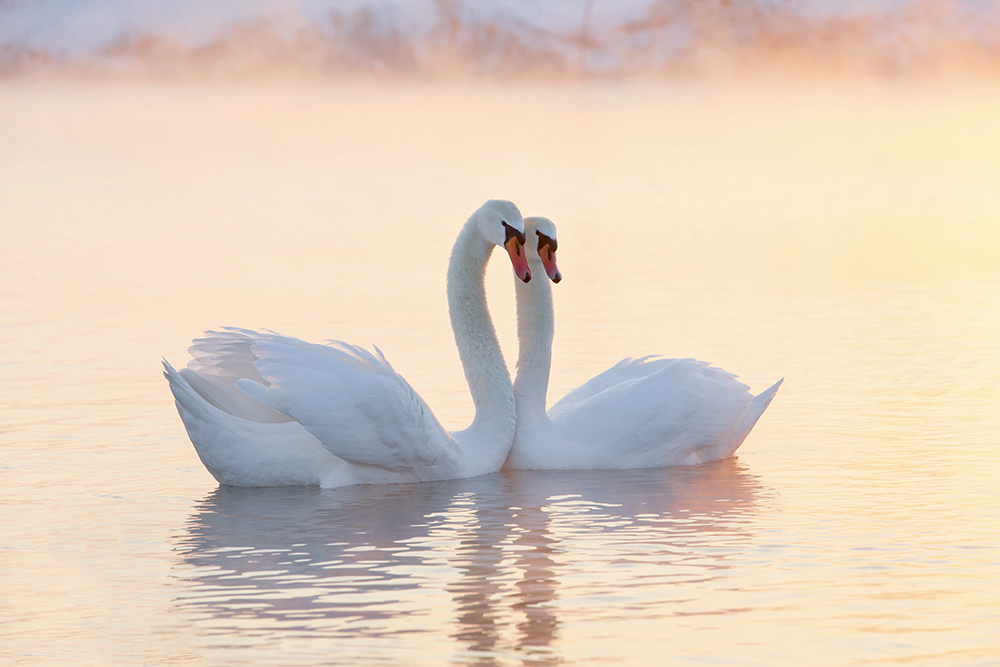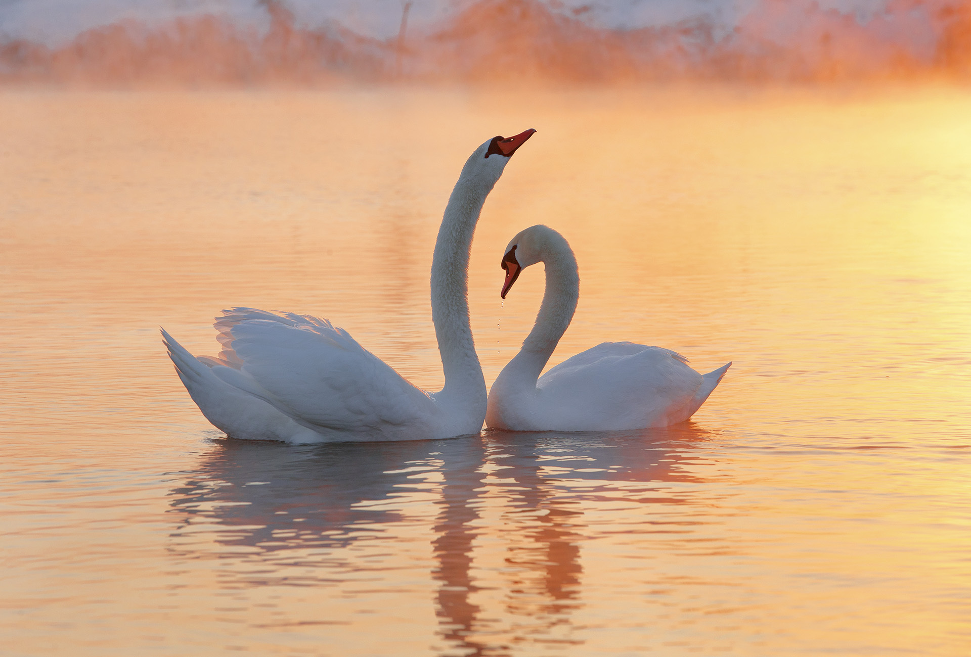 求偶时期是疣鼻天鹅最具攻击性的时期,击退情敌,求偶成功后又立即化身“爱情鸟”,成双成对地在水中嬉戏,翩翩起舞。疣鼻天鹅实行严格的“一夫一妻”制,一生只有一个伴侣,一旦配对,会厮守终生,不离不弃,直到老去。一旦有一只不幸死去,另一只宁愿孤独生活一辈子,也不再另觅佳偶。
