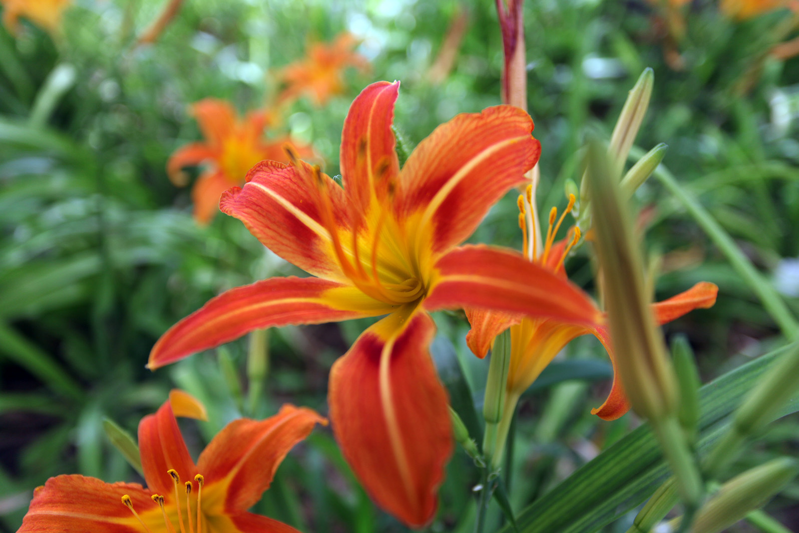 萱草是阿福花科、萱草属植物。根近肉质,中下部有纺锤状膨大;叶一般较宽;花早上开晚上凋谢,无香味,桔红色或桔黄色。