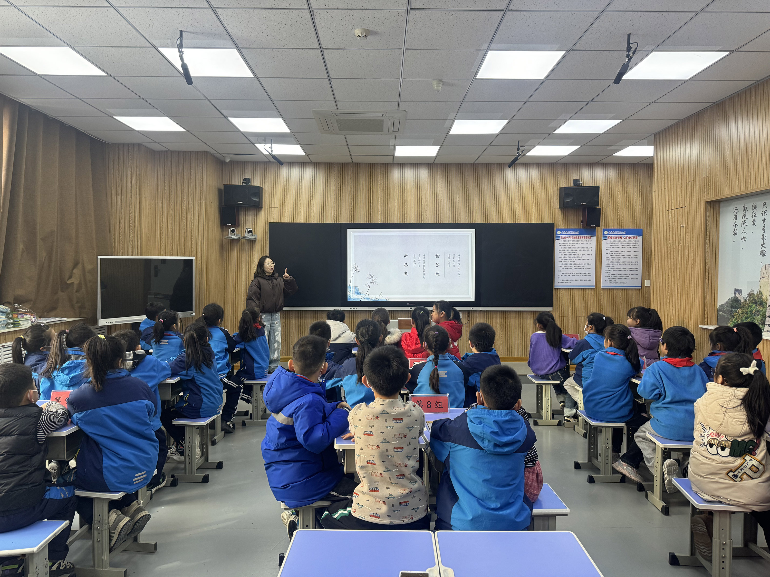 据悉,此次诗词大赛参赛学生包含该校1至5年级所有班级。经过前期预赛比拼,最终每个班选拔4名学生组成班级代表队参加校级决赛。决赛现场采用了电脑答题系统,分为必答题、抢答题两部分,每部分有15道题目,包括填词对句、古诗赏析等。比赛过程中,同学们认真思索,谨慎答题,评委老师也分别就答题情况进行点评和解析。