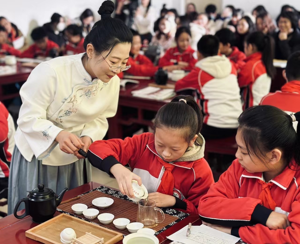 课堂上,同学们津津有味地品尝起了香喷喷的大米饭,笑逐颜开的样子表达了对这节课的喜爱;教室里,孩子们似模似样地温杯、投茶、润茶、冲泡,琥珀色的茶汤映着阳光显得更加晶莹剔透……2023年12月22日,在秦皇岛经济技术开发区第一小学,秦皇岛市娄卫润中小学综合实践课名师工作室成果推广活动驱散了冬至的寒冷,智慧和创新的火花不断迸发。
