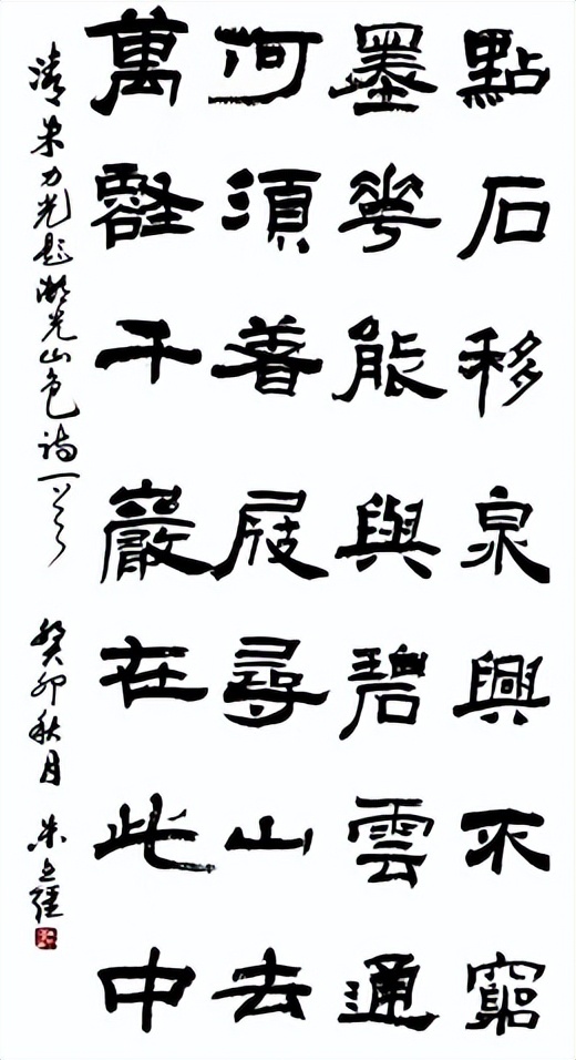 凡属翰墨能家,必有诸书皆成的卓越。朱立强先生的书法,形体博涉多优,甲骨、钟鼎、篆、隶、楷、行、草诸体精湛,无所不通,完整地走过了书法从源起到流变的整个过程。所以朱立强先生的书法,可以站在传承书法文化的全能角度,在书法的创作过程中,尽有弘扬文化的无量功德。因为先生的书法以文化为本源,所以所作诸书都兼具观赏性和文化品位。