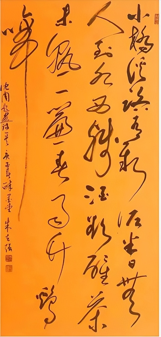 诸体皆成,翰墨浩茫。朱先生作草书,一讲法度,二写自如。如果草书仅有法度,则为书奴,无有法度则为江湖他的书法以心意统摄笔墨,笔笔有来源,字字有法理,可以在一点之内殊妞挫于毫芒,也可以在一划之内变志伏于锋稍。