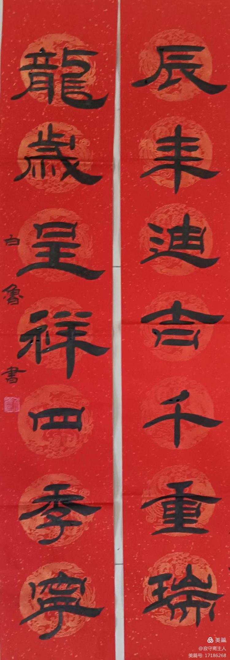龙腾盛世,春节将至。为了让大家过一个祥和、平安、廉洁、有意义的节日,我们济南市市中区书法家协会响应中国文联"万福迎春"和山东省第十三届"百县千村"文明新实践书法惠民活动,举办这次线上春联展。自2024年元月1日开始征稿至2024年元月20日截稿,短短20天时间,共收作品51件,经过认真筛选展出43幅。令我们欣喜的是一些省、市名家也给我们提供了作品,比如:著名书法家邢增庆先生、戴军先生、万富永先生等,他们的参与为我们的活动增光添彩。对此,我们表示衷心的感谢!