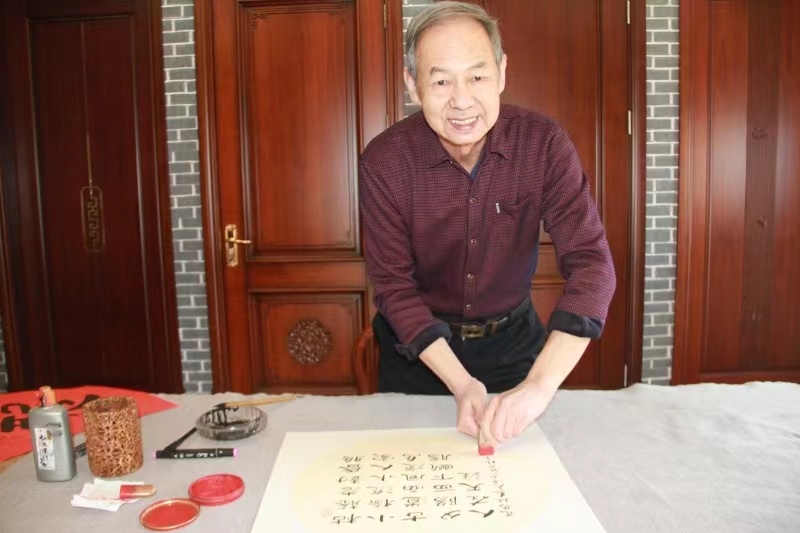 李福奎在书写《天净沙·秋思》。张保良 摄