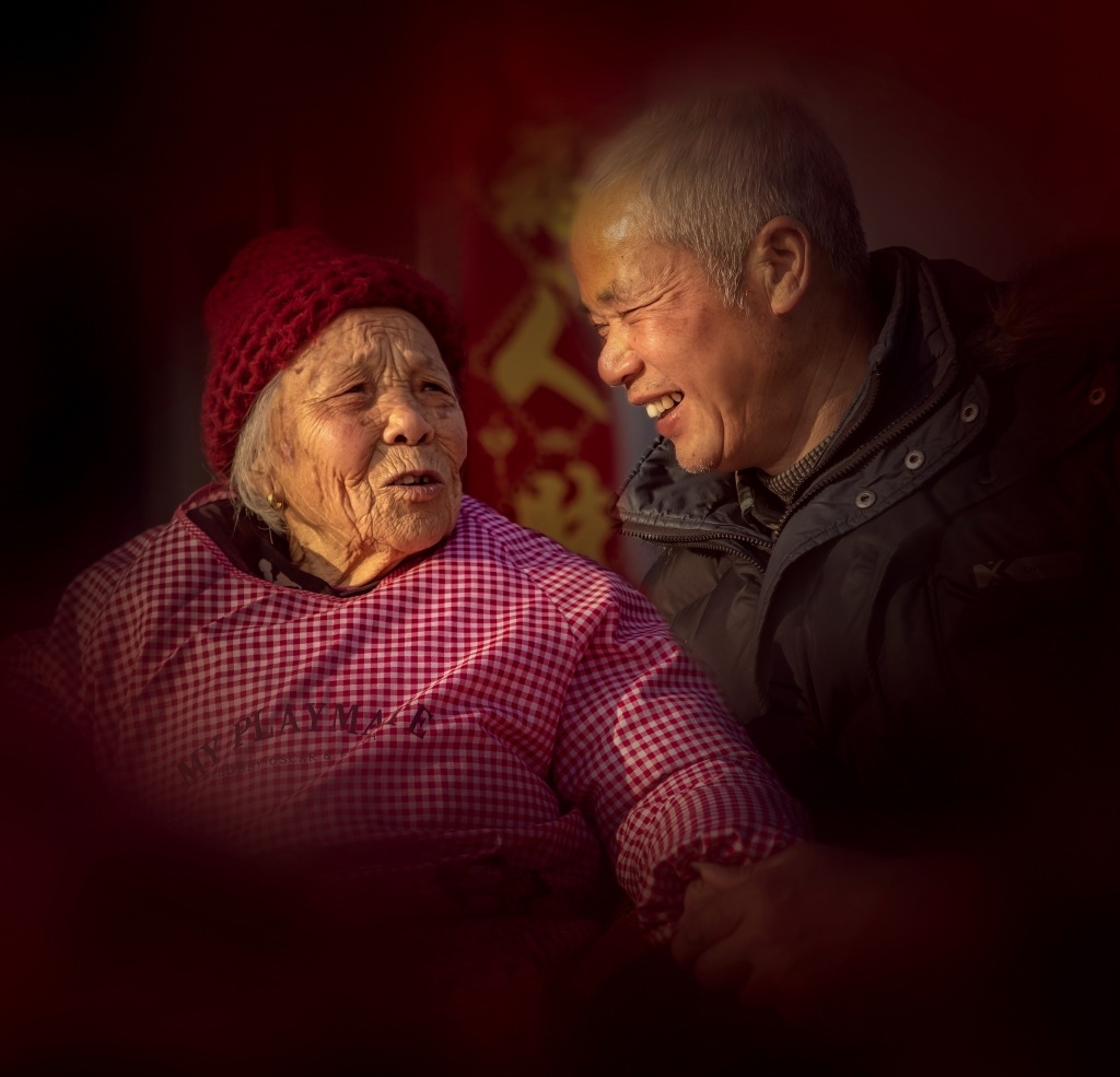看到报纸后,勾起了我一段难忘的回忆。这是2018年3月的一个下午,冬日的阳光暖意融融,我跟老伴在离家不远的大成路散步,走着走着,不经意间看到温馨的一幕:一座居民住宅大门口,一位头发已花白的儿子与老母亲相依在一起,边晒太阳边聊天。和谐家庭、孝敬长辈、幸福晚年……一连串词汇立即跃入我的脑海,这不正是中华传统美德的具体体现,是家庭和谐的真实写照。上前一询问,老人已年近九旬,面色红润,思维清晰,交谈时,她对儿女及晚辈们孝顺发自内心地赞不绝口。于是,在征得同意后,我们拿出随身携带的一部小黑卡相机,以贴着大红对联的门框为背景拍下这张照片,回来简单修理后留存。今年母亲节,《姜堰日报》征集相关图片,我们就将这张照片投稿。