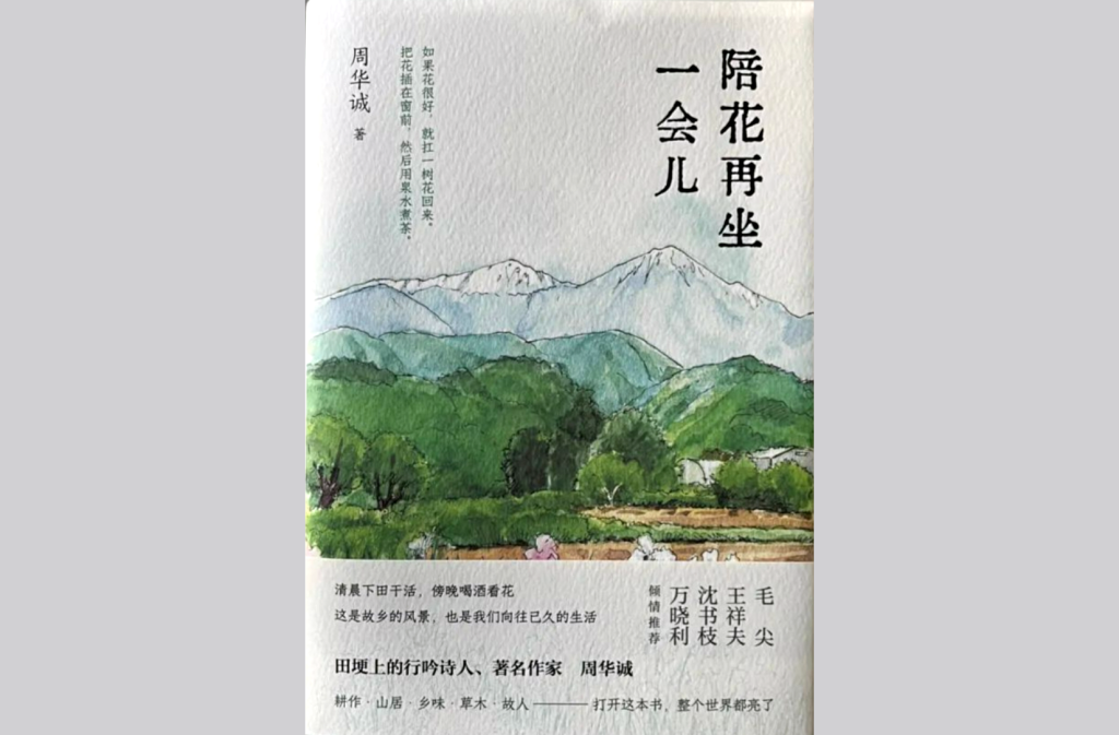 周华诚笔下日长如小年。我们不必慌张,可以从容地面对一窗明月,饮酒赏花喝茶;或者去一个小村庄,去看一棵古树。如果你愿意在菜垄间摆一张桌、泡一壶茶,陪一个农人有一句没一句地闲聊,应该也是个不错的选择。看了《陪花再坐一会儿》,我特别想去浙江松阳走走,去看看那里的古村落,去杨家堂的凉亭坐坐,看黄色夯土墙层层叠叠的古意,看山峦环抱、层峦叠翠,然后喝一杯当地人泡的热气腾腾的绿茶,优哉游哉!