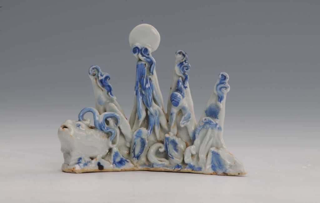景德镇窑青花瓷塑海鳌山子笔架