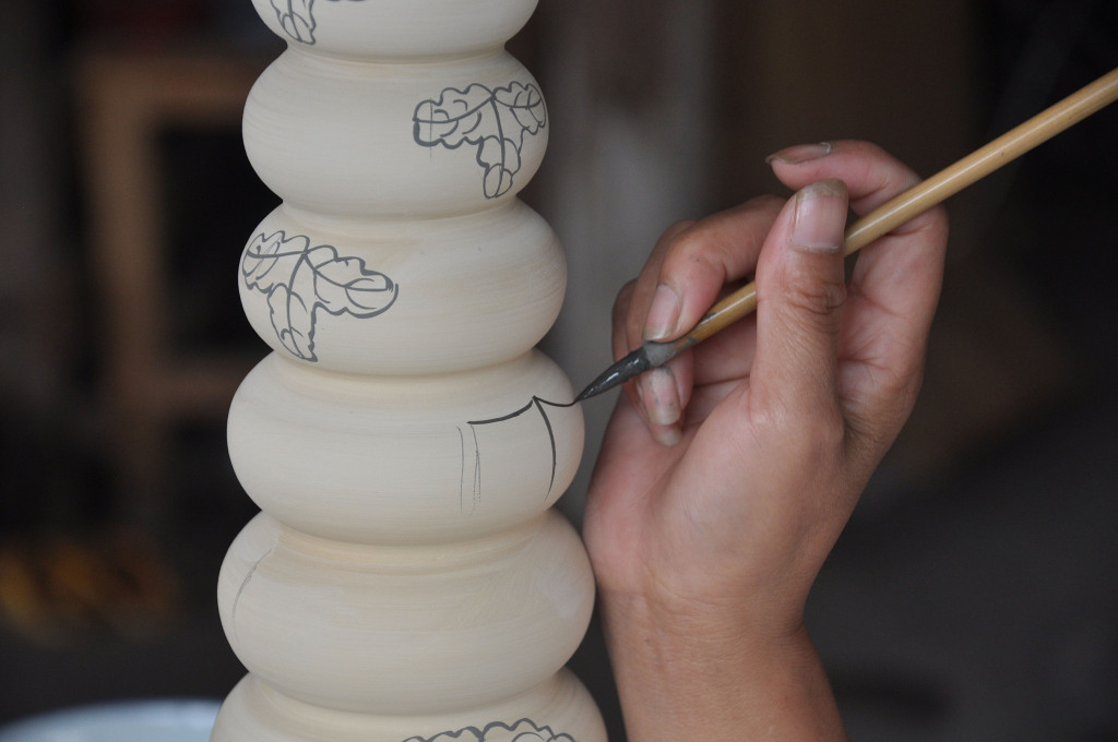 在陶瓷坯体上描绘纹饰