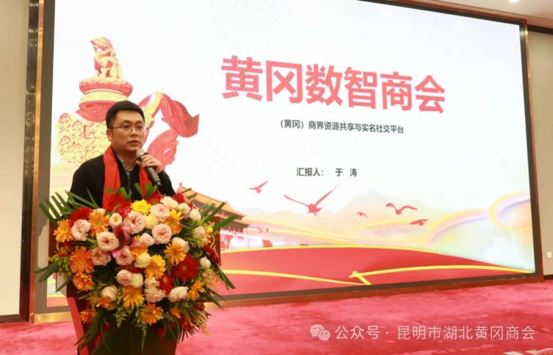 蔡鲸会长致辞。他首先对支持和关心我会发展的各位领导、各位嘉宾、各位朋友表示最衷心的感谢,对莅临本次大会的各位领导、各位朋友、各界同仁表示最热烈的欢迎。从政治建会、会员服务、对外交流、招商引资、平台建设等五个方面对商会过去的工作进行了总结,并指出下一步将在理事会的带领下重点从以下几个方向开展工作:对外交流上:积极组织赴异地黄冈商会的交流学习活动,通过走出去引进来的方法,创新办会机制,寻求新突破;会员服务上:提升商会平台服务功能,真正发挥“万企昌”服务平台作用,实实在在服务好会员;创新发展上:积极同黄冈国投集团合作,宣传推广“黄冈地标优品(昆明馆)” 线上商城,将黄冈十个县市区特色地标优品引入云南,同时逐步将云南特色产品引进黄冈,实现优势资源共享,寻求以商养会突破口,尽力实现商会造血功能。
