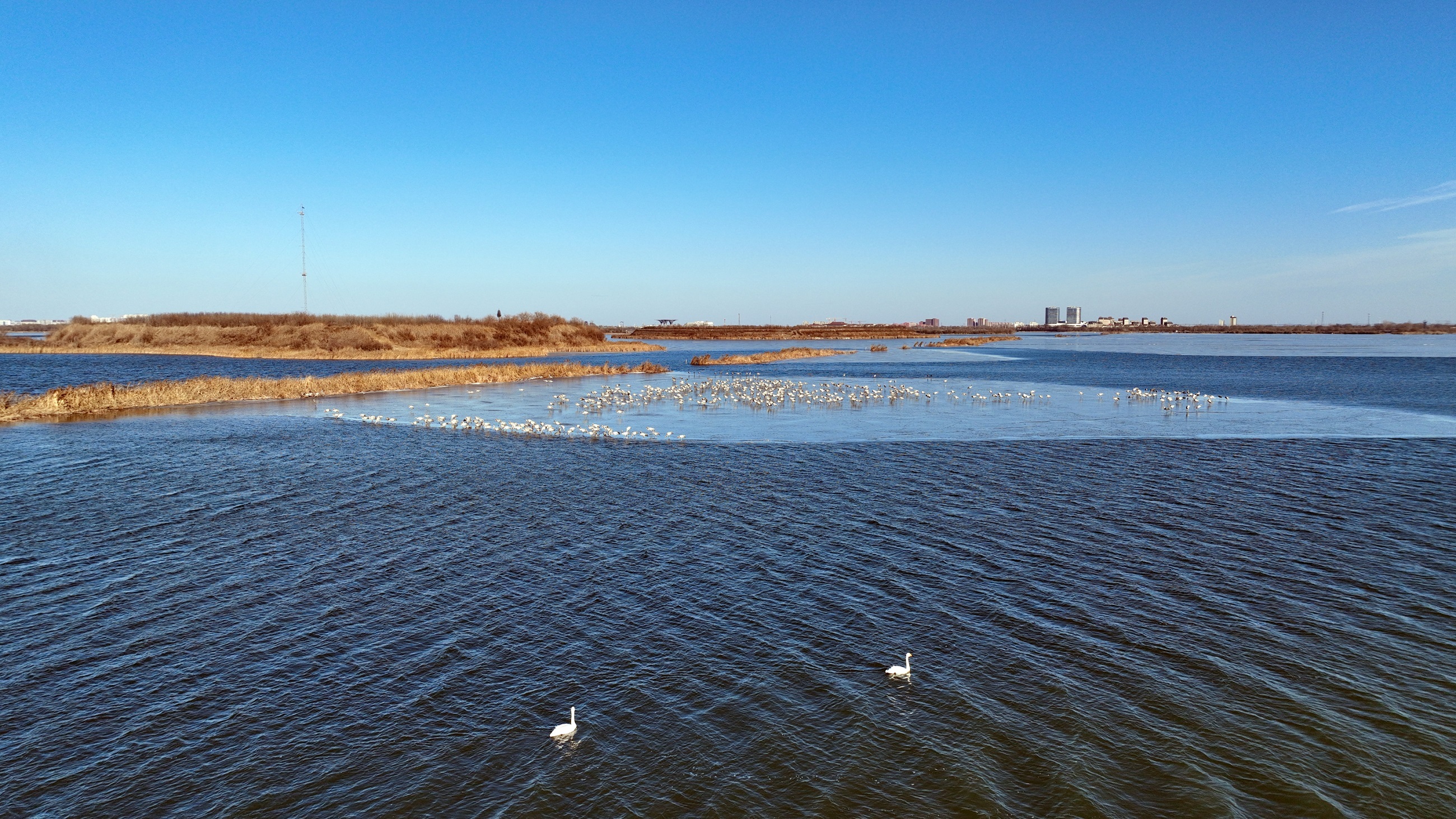 作为东亚—澳大利西亚迁飞路线上的重要停歇站,衡水湖为迁徙候鸟提供了良好的栖息环境,这使得越来越多像天鹅这样的珍稀鸟类来到衡水湖,或是迁徙途中暂时落脚,或是直接定居。