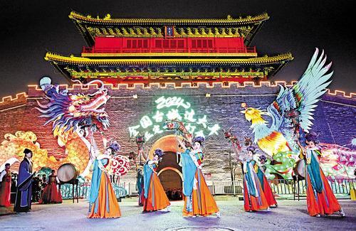威武雄壮的正定龙狮、气势恢宏的常山战鼓、腾云驾雾的蛟龙花灯……千余盏独具正定特色的花灯,把城墙装点得流光溢彩,宛若天上的街市。