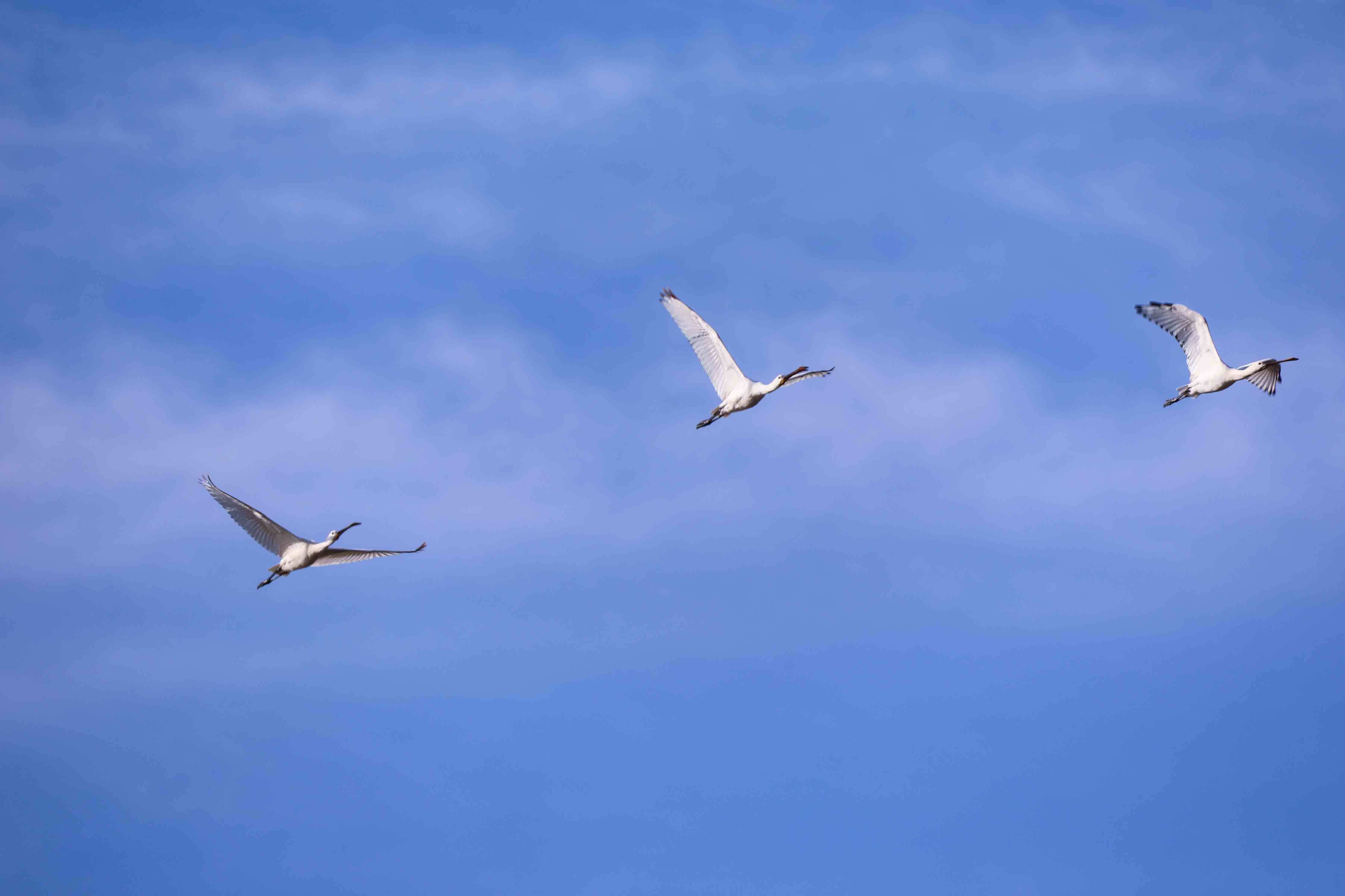 白琵鹭是一种迁徙性鸟类,每年都会在繁殖地和越冬地之间进行长距离的迁徙。它们通常在春季飞往北方繁殖,然后在秋季返回南方越冬。这种迁徙习性使得白琵鹭能够充分利用不同地区的自然资源,维持其种群的生存和繁衍。