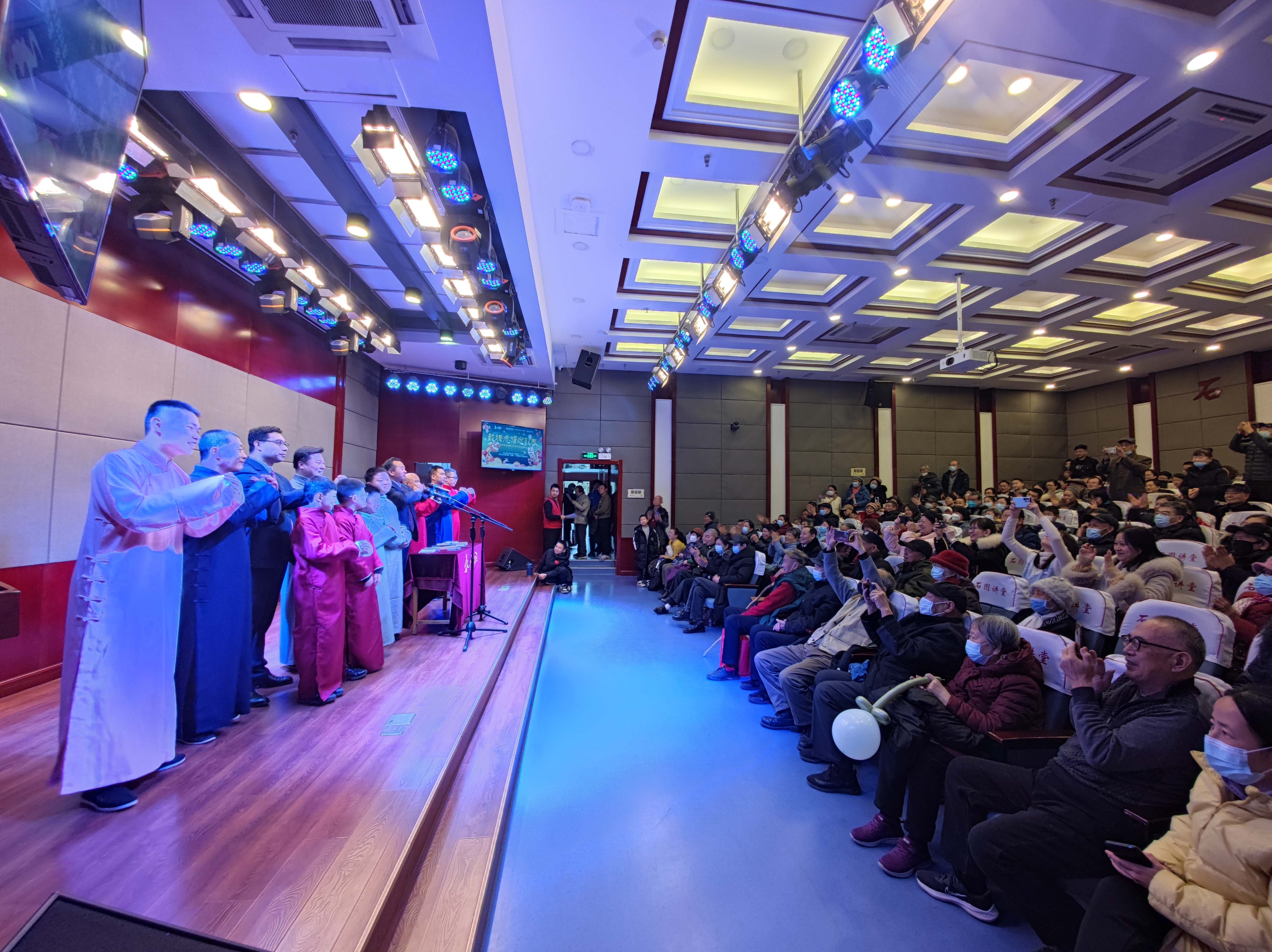 1月28日,田杰曲艺家工作室、李佳曲艺家工作室和春兴社在市图书馆举办“龙腾虎跃迎新春”相声演出。(石家庄市文联供图)