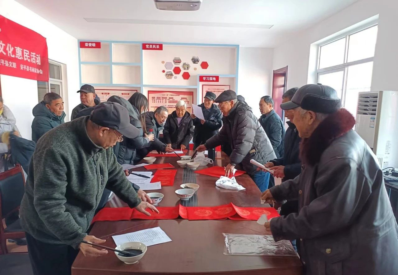 近日,河北省衡水市安平县书画爱好者来到孙犁故里大子文镇孙遥城村,开展义务写春联、送福字活动。