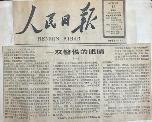 1987年5月12日,《人民日报》刊登了我近两千字的长篇通讯《一双警惕的眼睛》。当时我在淄博人民广播电台任采通部主任,从一件通讯员的一般来稿中发现了这一线索,立即感到这是个重要题材,适应当时大力提倡的加强法治建设,保障社会安定的大局要求。于是,第二天一早,我就赶往周村区实地采访这位传奇的巾帼老英雄。
