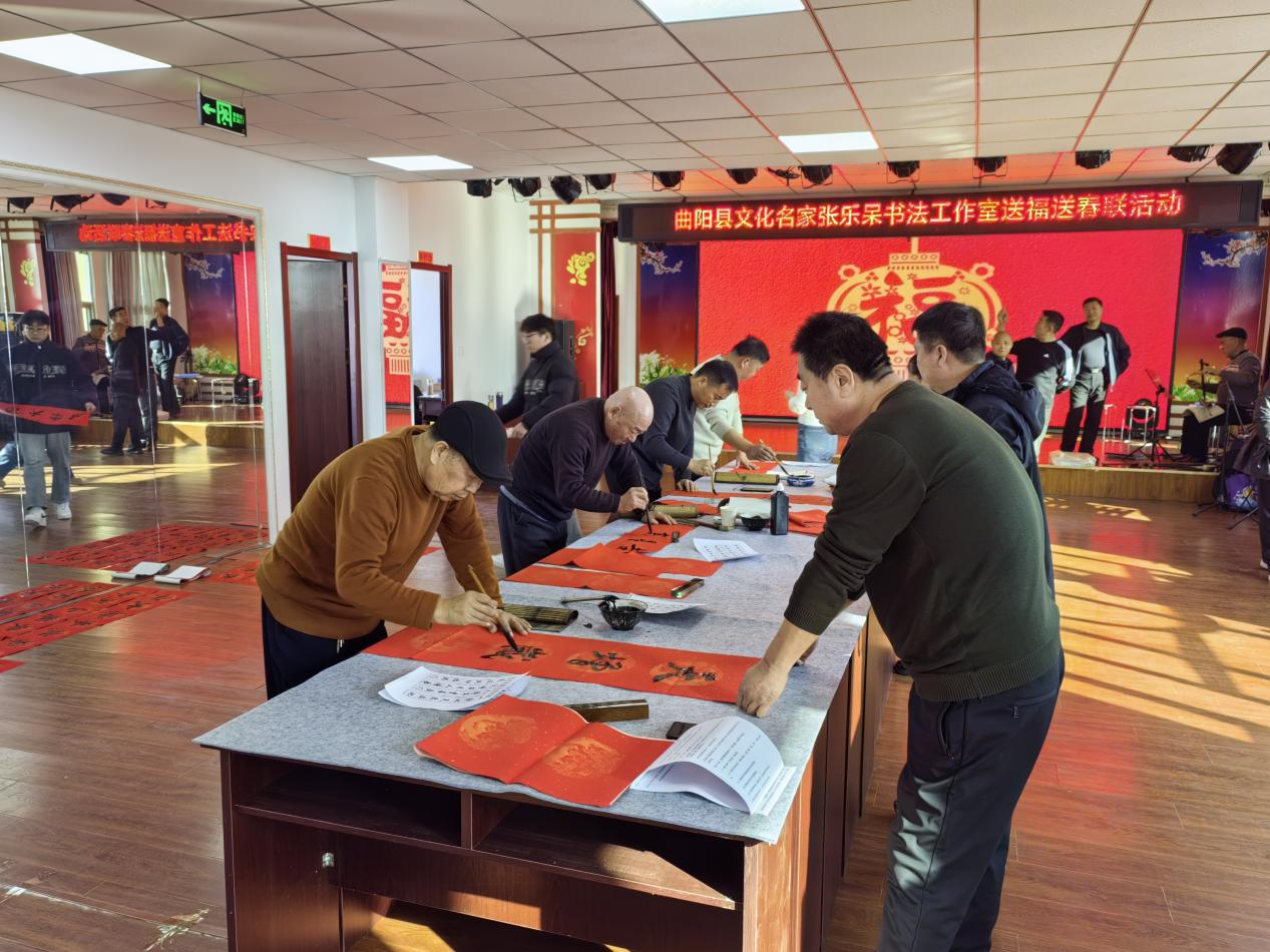 “千门万户曈曈日,总把新桃换旧符。”1月22日,杨丽静书法工作室走进灵山镇北镇村为村民书写春联和福字1500多副,参与村民达100多人;1月24日,张乐呆书法工作室在曲阳县文化馆书写春联150余副送给群众;1月26日,刘欣欣美术工作室到顺平县参加“写春联送春联 翰墨飘香暖人心”活动;1月29日,刘建义书法工作室走进齐村镇舍山村,活动吸引了120多名农民群众热情参与……曲阳县书画文化名家进农村、进企业、进机关、进校园书写春联,为群众送温暖送祝福,增添了红火喜庆的节日氛围,广大群众感受到了书法艺术的独特魅力,增强了对中华民族传统文化的热爱。
