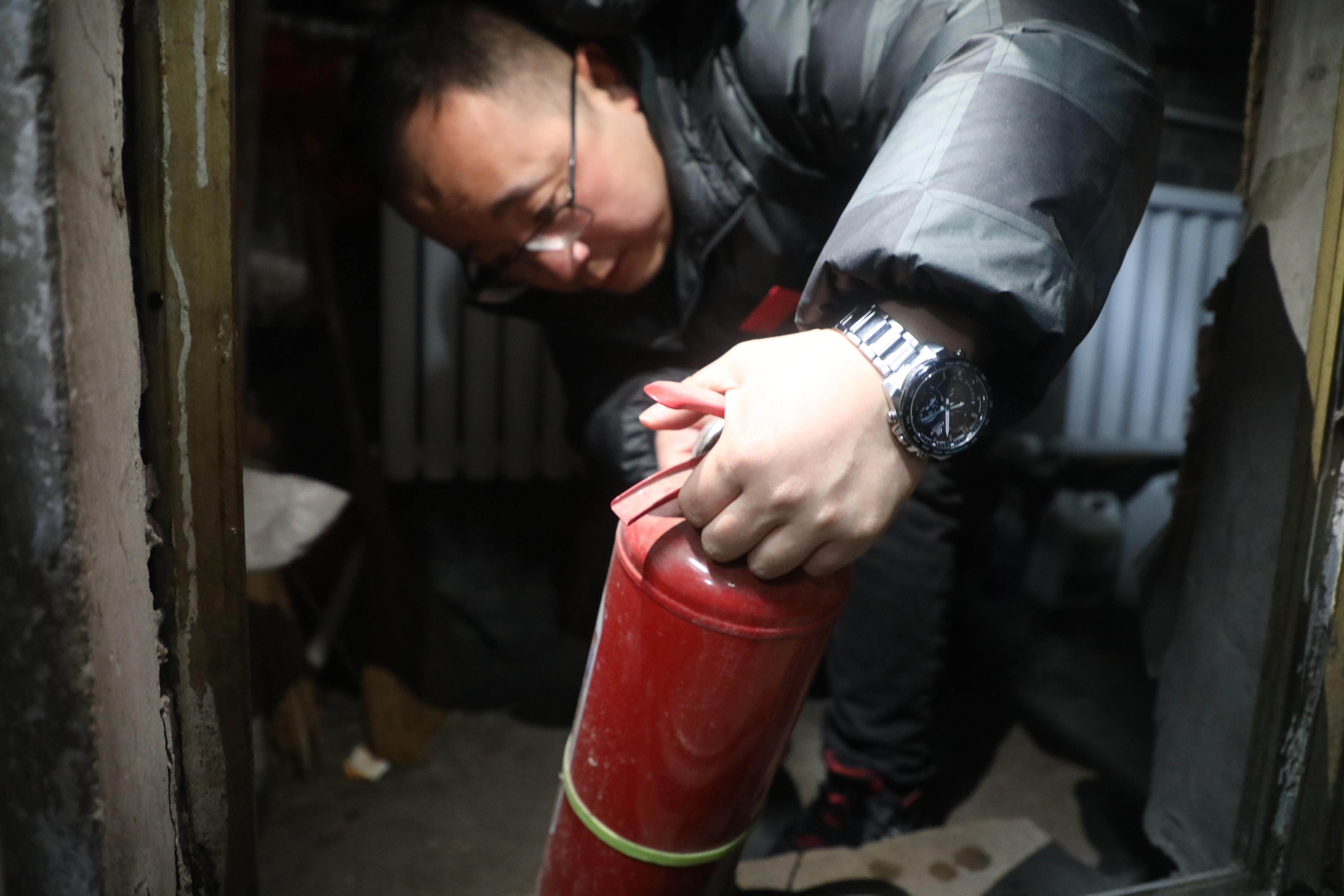 检查组仔细检查商家消防设施。池世杰 摄