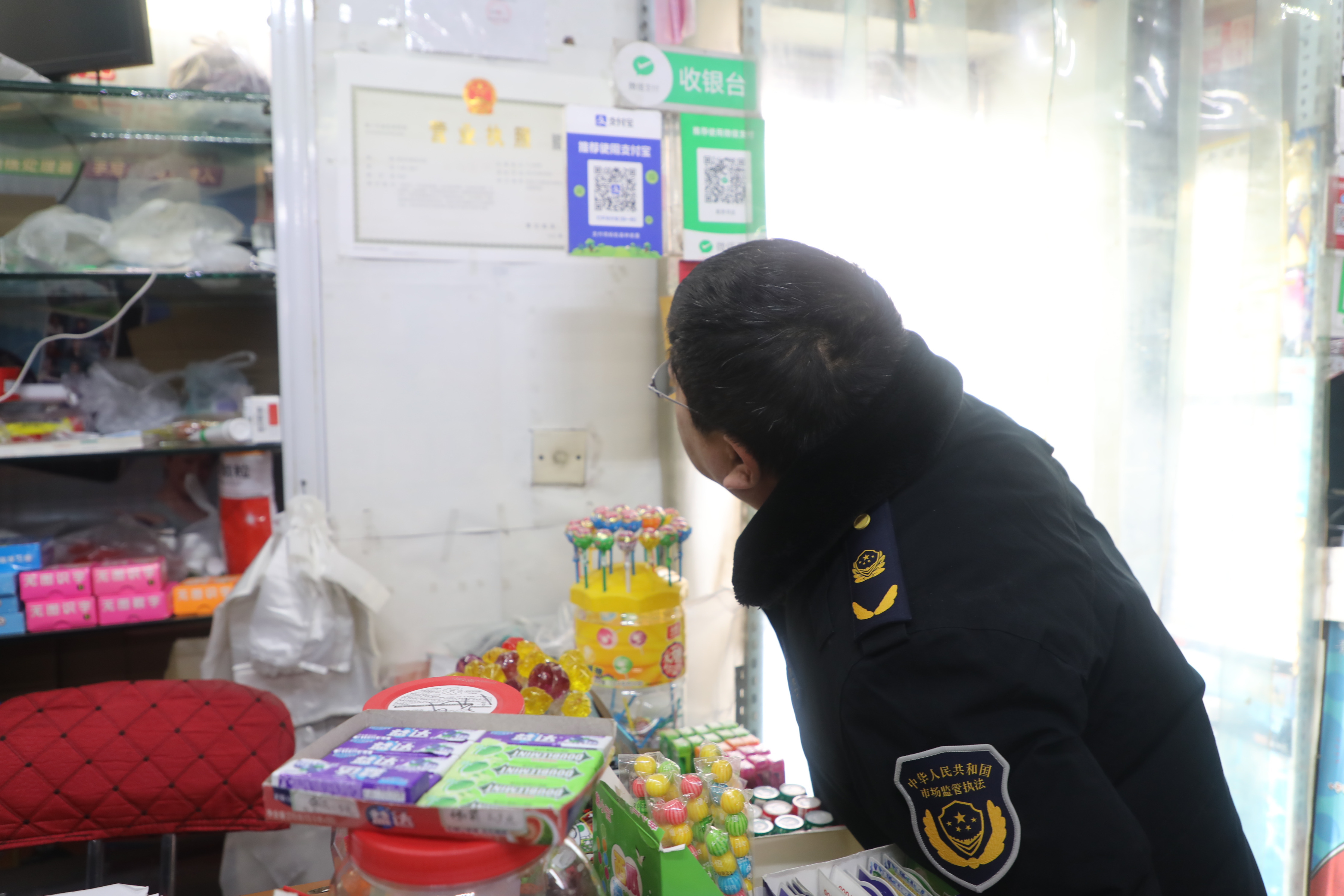 检查组检查商家相关证照。池世杰 摄