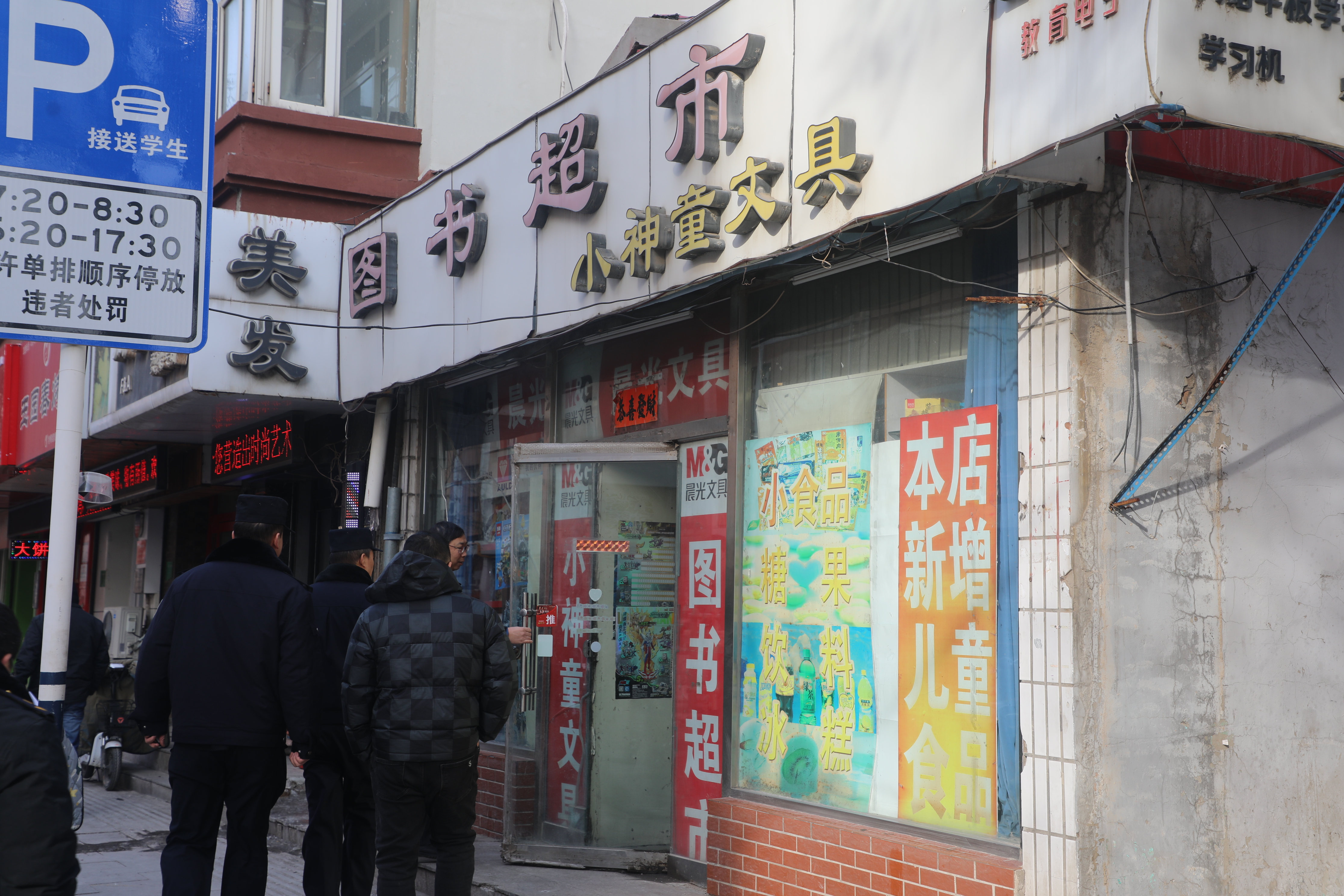 检查组对文具店、书店等商家进行入户检查。池世杰 摄