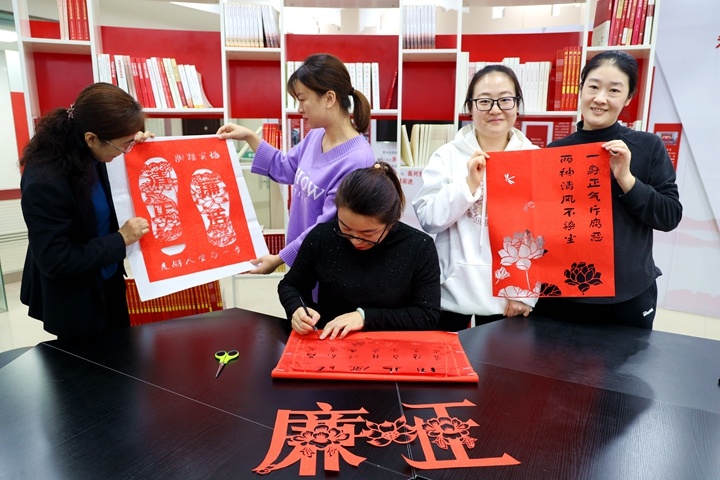 精美的廉洁文化剪纸作品。李菲菲 买坤 摄