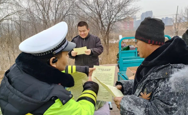 活动中,民警针对春节期间走亲访友,出行频率增高的实际情况,结合近年来冬季交通事故案例讲述乘坐农用三轮车、超员车辆的危害性以及“一盔一带”的重要性,引导农民朋友自觉抵制交通违法行为,营造春运交通安全的浓厚氛围。