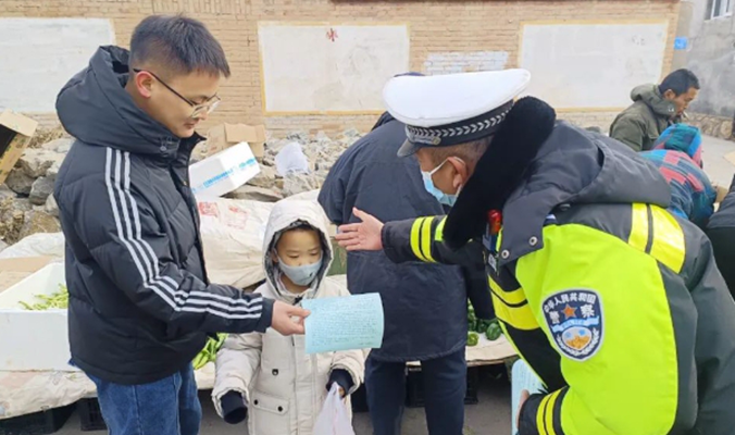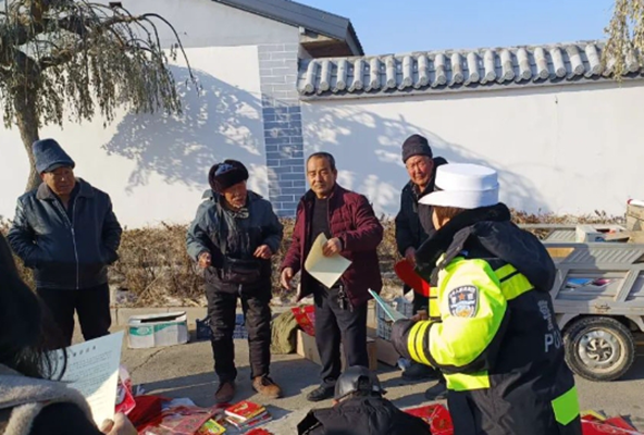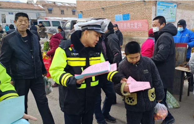春运期间,河北省张家口市涿鹿县公安局交警大队组织警力走进农村集市开展“平安春运、交警同行”主题宣传。