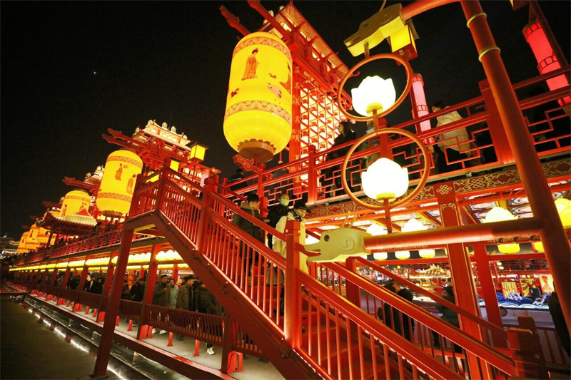 2月13日晚,市民和游客在位于唐山市丰南区的河头老街参观游玩。河北日报记者 王育民摄