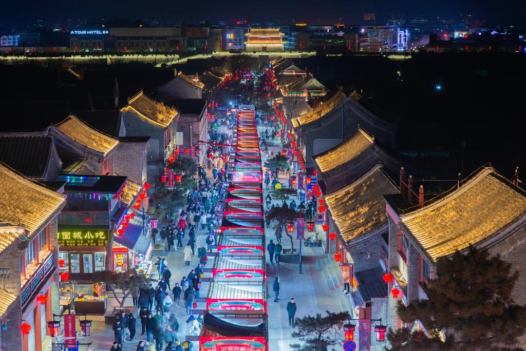 五颜六色的传统花灯装点古城,丰富多彩的民俗活动年味浓郁。春节里,河北省秦皇岛市山海关古城游人如织,人们体验传统年俗活动,购特产、品美食,沉浸在“长城脚下过大年”的浓厚节庆氛围中。